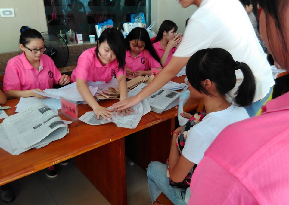 215年9月6日,已是迎新工作进行的第三天,也是最后一天,但迎新工作仍然在如火如荼的进行着。正如外国语学院粉红色的院服一样明媚灿烂,外国语学院无疑是全校迎新工作的佼佼者。