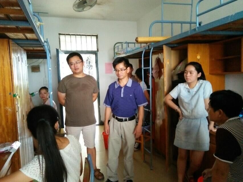 2015年9月5日上午,外语系党总支书记黄柏萍,党总支副书记刘佳萍,团总支书记魏峰及辅导员前往新生寝室看望新生,为同学们送去亲切的问候。