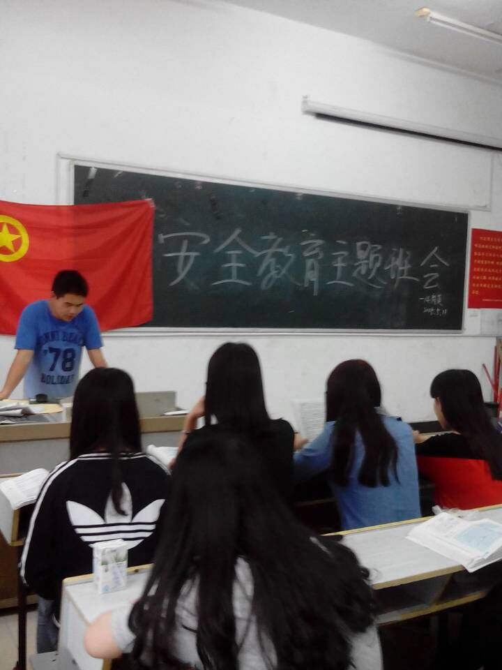 为了加强大学生自我保护意识,营造一种和谐的成长氛围。2015年5月11日,外语系14级商英班开展以"安全教育"为主题的班会,由班长祝鑫同学主持,得到同学们的热烈响应,引人深思。