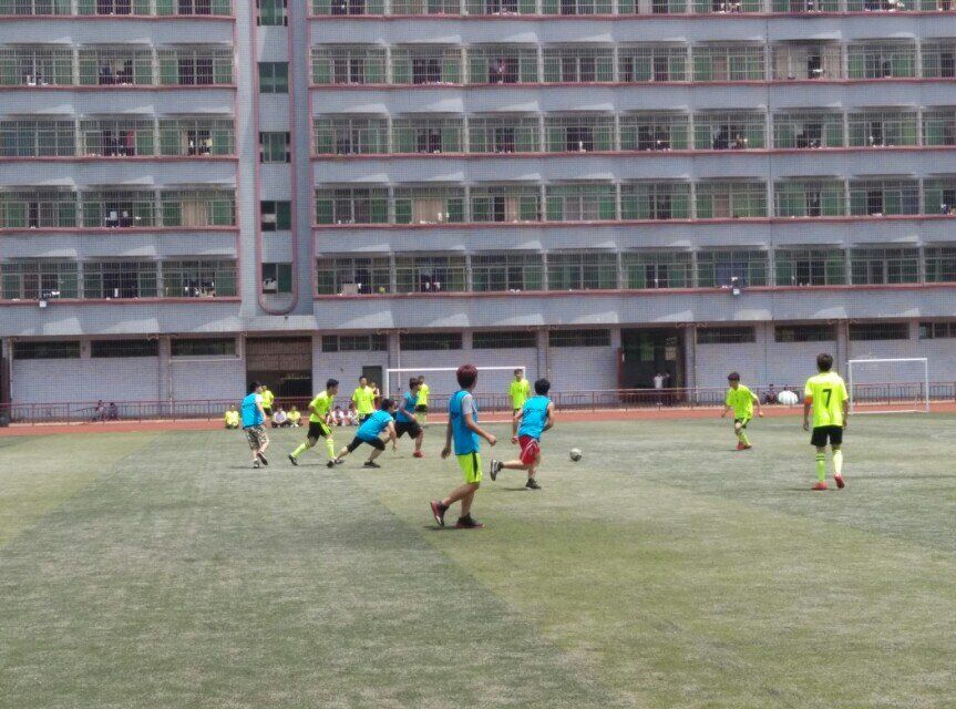5月12日中午,太阳炽热的照着大地,在绿草茵茵的球场上,外语系和计算机系进行激烈的足球比赛。