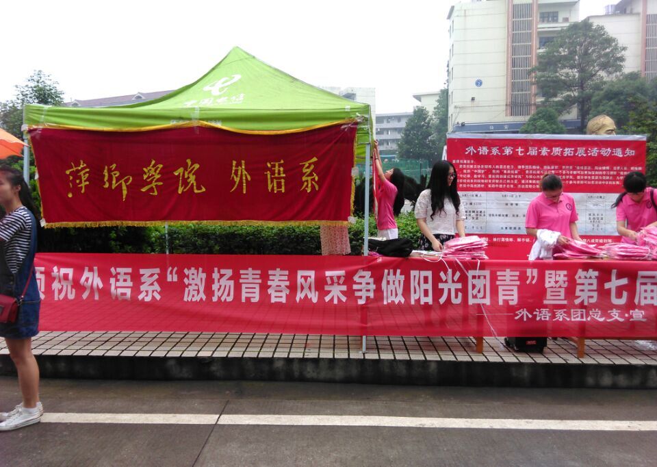 5月18号中午,外语系在中心小广场宣传分传系服,分发系服人员有张婷杰,高梦轩,胡晓桐,龚杰等人。