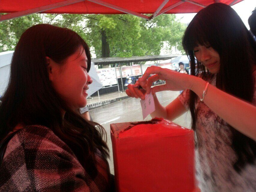 4月27号中午,外语系在中心小广场举行了习近平总书记的“八字真经”的读后感投票活动。大家冒着雨踊跃投票,可见大家的学习热情十分高,习近平总书记的“八字真经”也确实让我们受益匪浅。