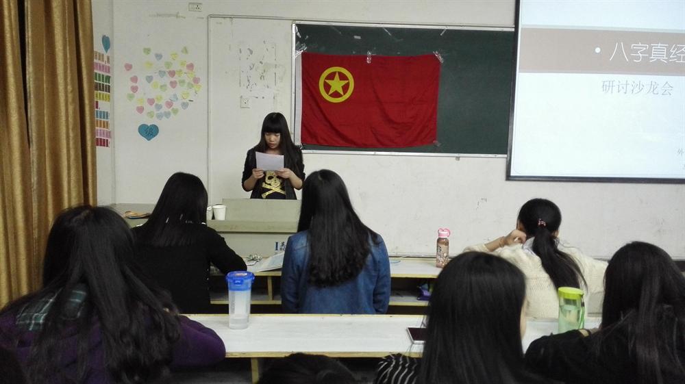 “勤学、修德、明辨、笃实”是去年5月4日习近平总书记在北京大学同师生代表座谈时,对当代大学生提出的殷切期望。 四者辩证统一,有机联系,缺一不可。为了让我们更好的学习习大大提出的八字真经,了解其真谛。我班团支书李菲于4月27日晚,组织全班同学在班内开展“八字真经研讨沙龙会”。班会上李菲,像我们一一解释了八字真经的内涵。
