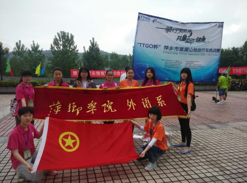 萍乡学院外语系不仅参加了现场志愿活动,而且还为山区孩子募集了100本课外书。首先是交通广播的主持人致比赛的开幕词,烟花在空中绽放,比赛选手报名后都耐心地在现场等待着。我们在麦田活动的联系人的带领下,拿着充满绿意的旗子维持着赛场的秩序。山地自行车挑战选手在骑车途中有我们外语系志愿者加油打气。我们每个人都担着这份责任。途中会有坡度阻碍着赛手们前进;途中会让志愿者们感到筋疲力尽;途中这些困难比起活动圆满结束都显得微不足道。这次比赛的奖品非常丰富,让很多赛手都懂得了一个道理:付出了总会有回报!