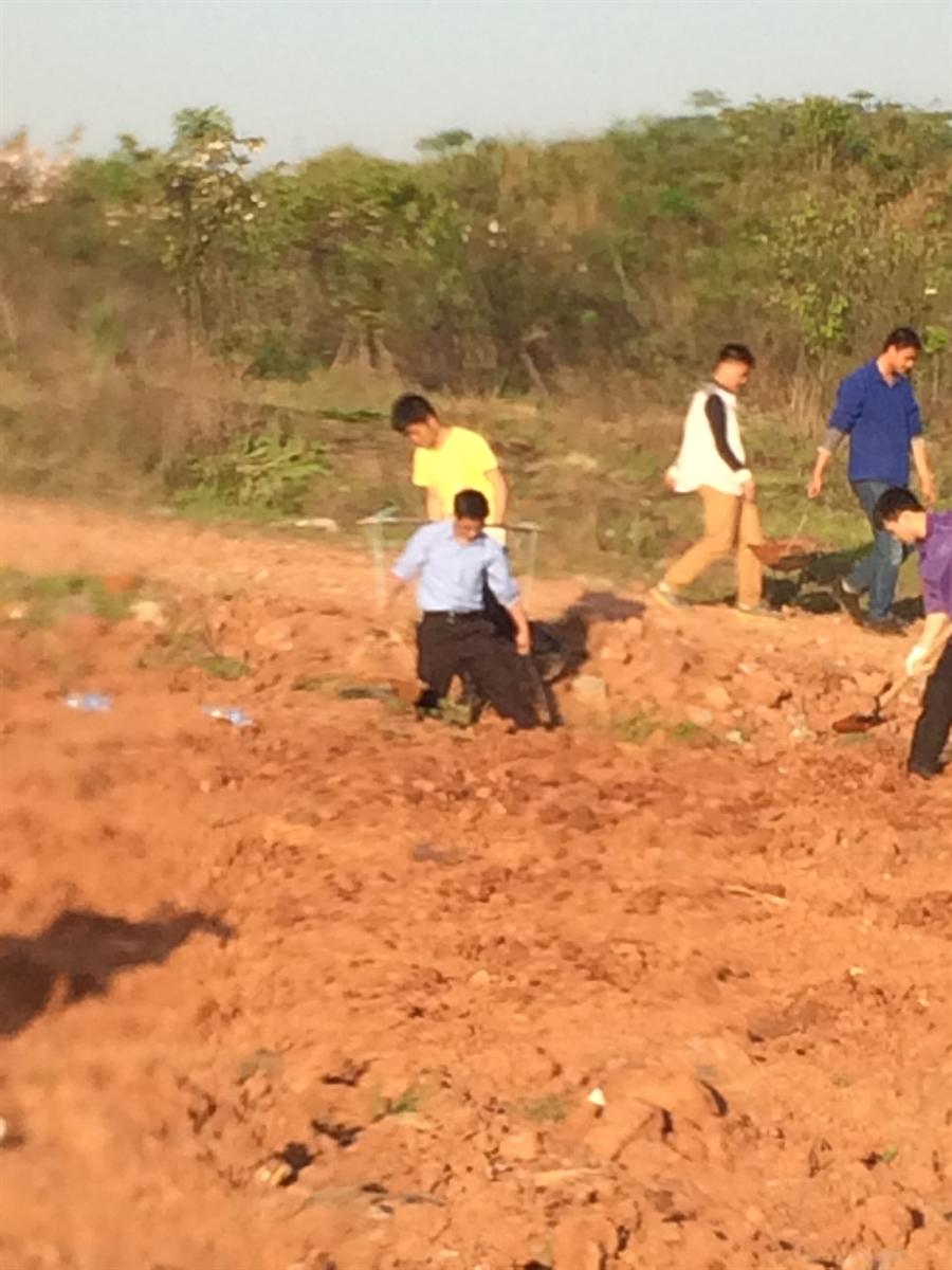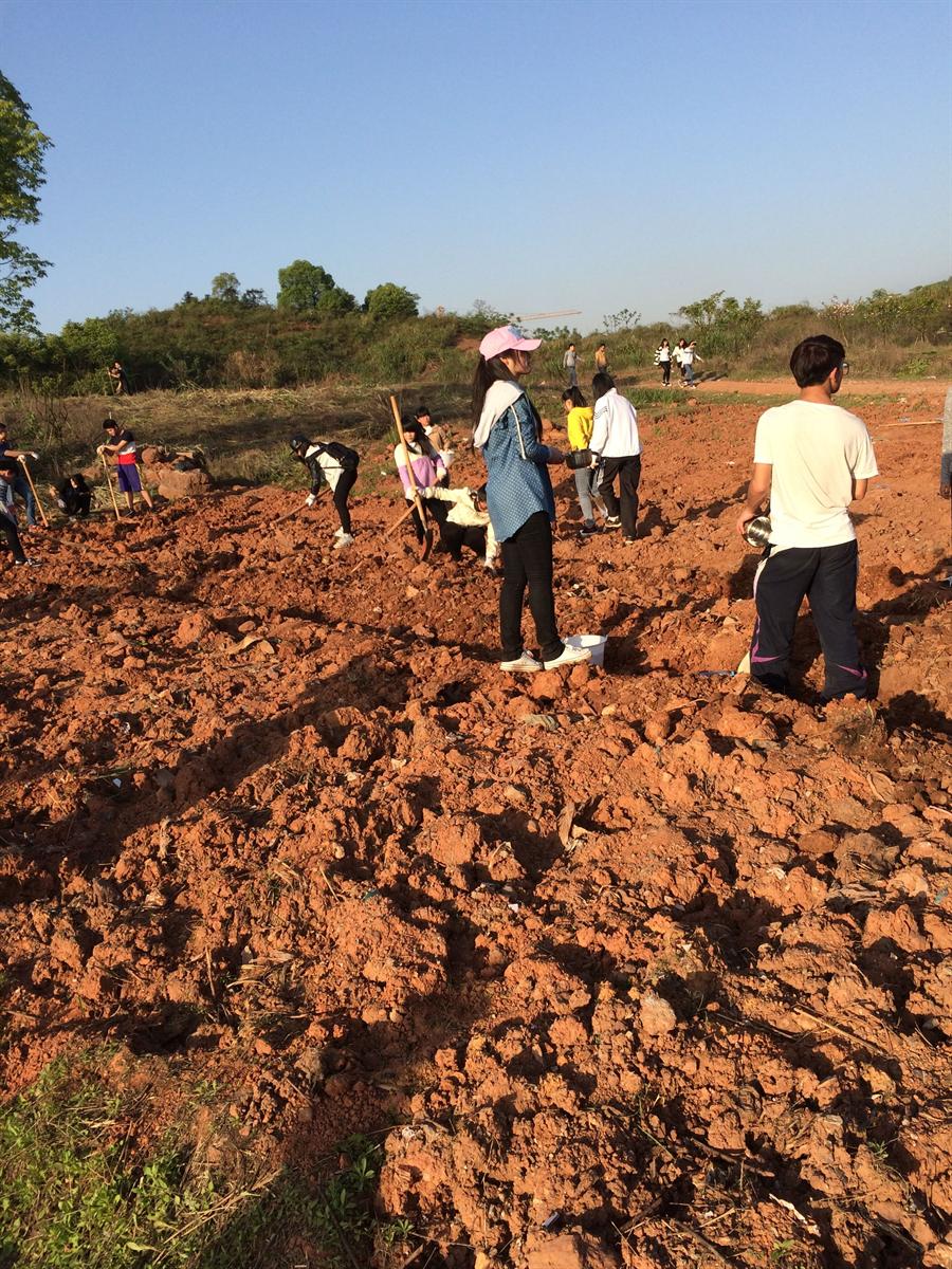 下午四点钟左右,在外语系大二的学长学姐的带领下,同学们各自拿着劳动工具来到系部所在的种菜基地进行劳动。在这片基地上,你可以看到一群辛苦劳作,奔走穿梭的年轻身影;他们有的耐心地在地里捡坚硬的石块,有的奋力挥舞沉重的锄头开垦菜地,有的细致地给洞坑里的种子浇水灌溉。辛苦的劳动使得很多同学手掌磨出了水泡,可是他们没有半句怨言;强度高的体力活动让他们疲惫不堪,但是他们没有丝毫的懈怠。他们相互协作,共同分担着,展示出了集体的团结和凝聚力。让人觉得温暖和感动的是,外语系的一些领导和老师也积极地参与到这次活动中来,他们亲自下地,拿着劳动工具和同学们一起劳动。这一举动鼓舞了在场的同学,同时也给同学们树立了一个良好的精神榜样。