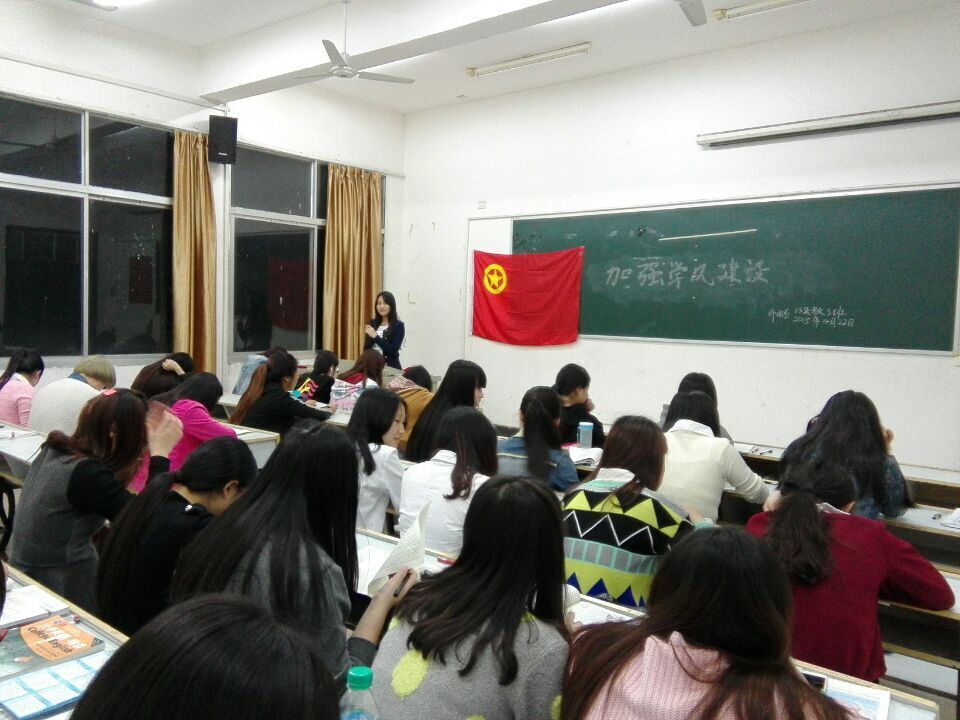 2015年4月22日,外语系13英教3班在3309教室召开以“加强学风建设”为主题的班会活动,班会由白菊芬主持。