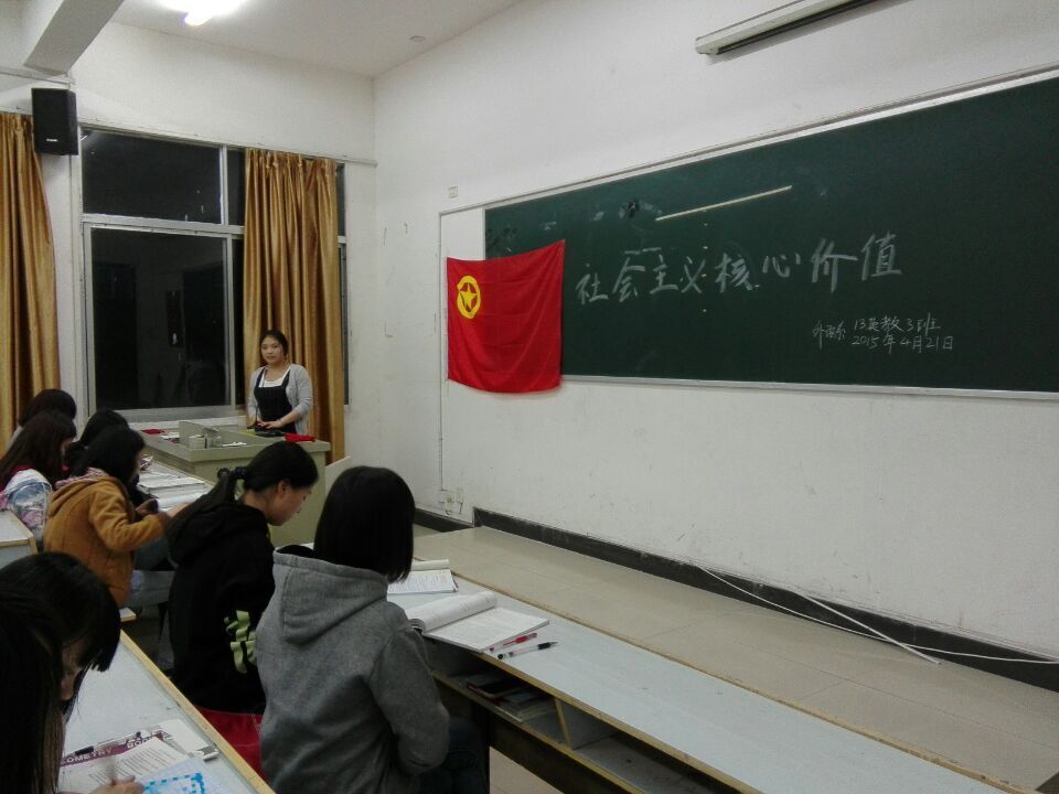 2015年4月21日,外语系13英教3班在3309教室召开以“社会主义核心价值”为主题的班会活动,由班长钟娜主持此次班会的整个流程。