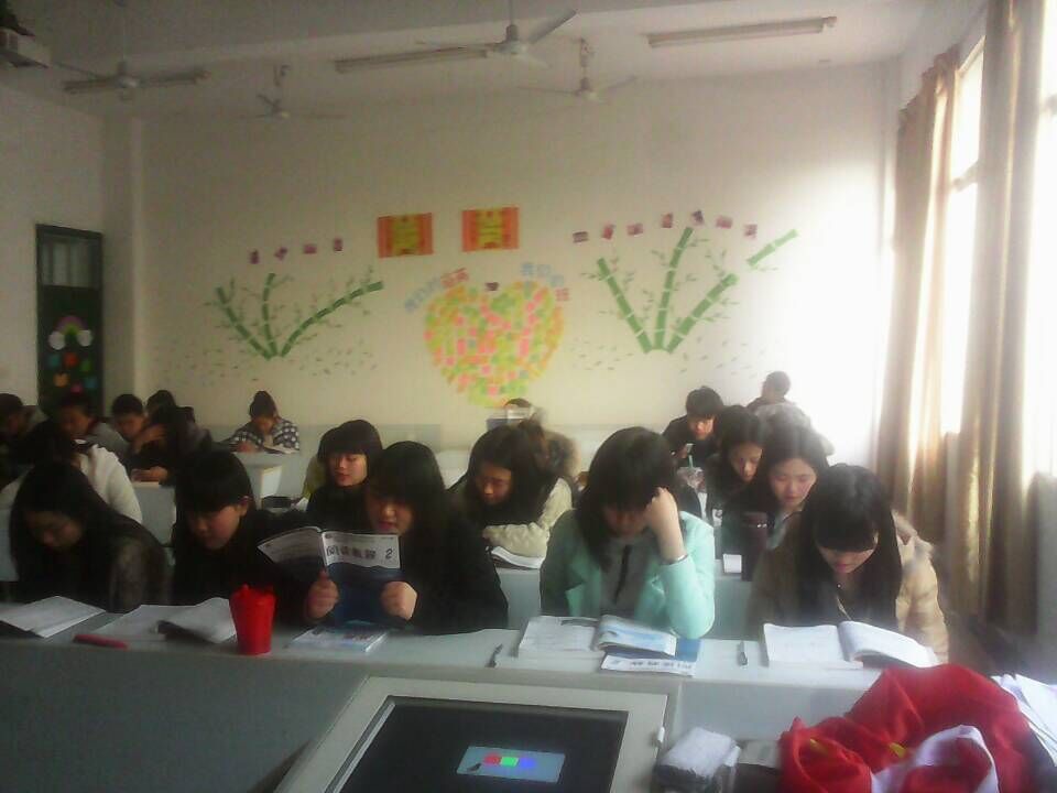 一大早,在凉风的陪伴下,随着陆陆续续的人群来到教室,放下书本,打开书本,开始了一天的校园生活。早读就在同学们的朗诵中开始了:有的同学在拼写英语单词,有的同学在朗诵英语诗歌,有的同学在背诵英语文章,还有的同学用手机跟读。在他们的脸上你看不见慵懒的模样,看见的只有在为自己的青春不断奋斗与努力的痕迹。在此我们不难发现早读表现的较好的班级有:14英本2、14英本4、14英本5、14英教1、14商英、13英本5和13英教3。
