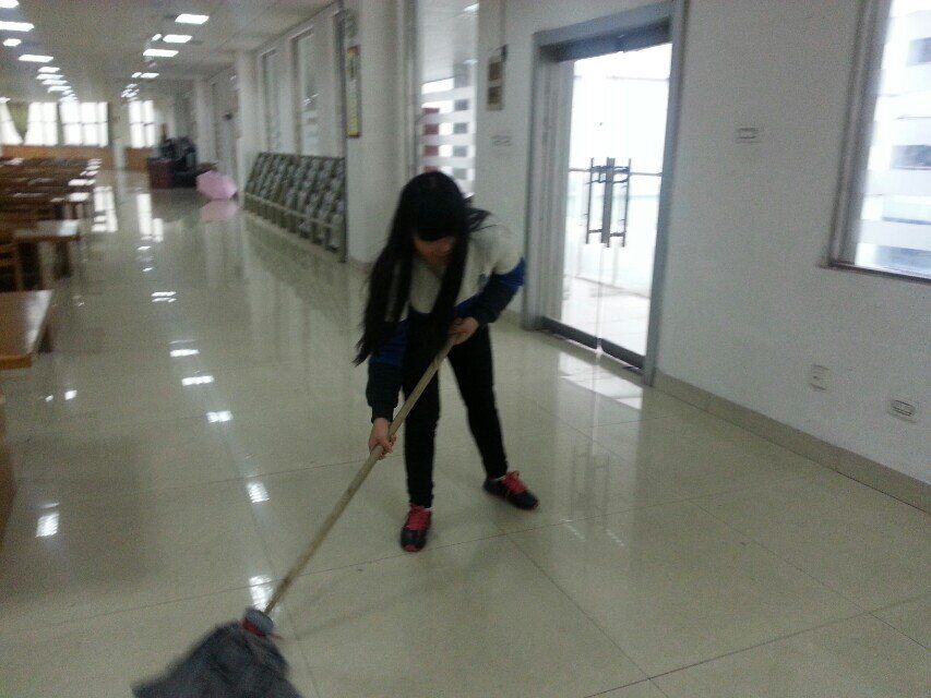 同学们分工合作,有条不紊,男生主要负责提水,拖地,女生主要负责擦洗桌凳,干的热火朝天,平时熟悉的图书馆变得更加的整洁,同学们的热情充斥了整个图书馆,虽然大家都很辛苦,很累,但看到图书馆留下了自己辛劳无私奉献的痕迹,内心还是很兴奋开心的,整个过程中,进一步增强了同学们之间的友谊,更一步巩固了团体的协作意识,在互帮互助,共同努力下,我们尽享汗水的甘甜。