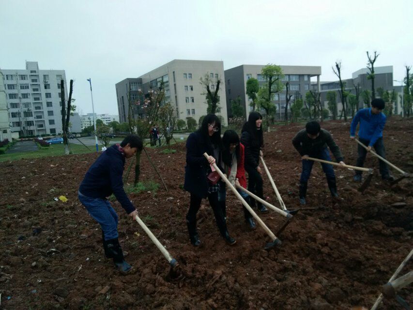 原来是校团委副书记谢伟萍带领萍乡学院各系部的同学在进行翻土体验活动。指导老师刘老师在一旁耐心用心的教同学们翻土,认真的给同学们讲解翻土的技巧,示范。