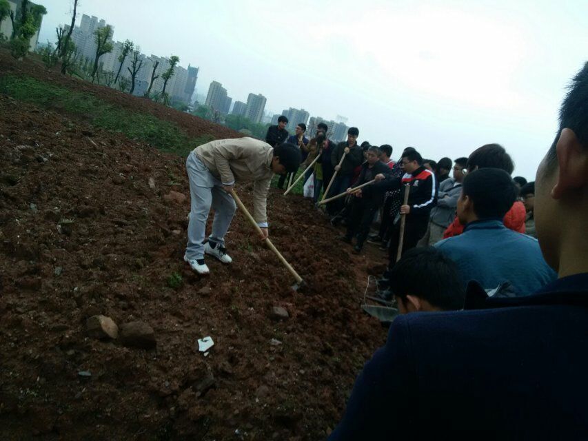 2015年4月9日,虽说春天早已来临,但楼外寒风呼呼依旧。看英华楼侧的平旷土地,慢慢移动的小锄头是校园里一道靓丽的风景线。