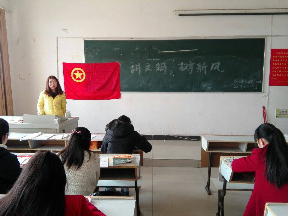 2015年3月22日,外语系13英教3班由团支书蔡娅妮主持“讲文明,树新风”的主题班会活动。讨论讲文明树新风的必要性和重要性,以及我们新一代大学生应如何行动。