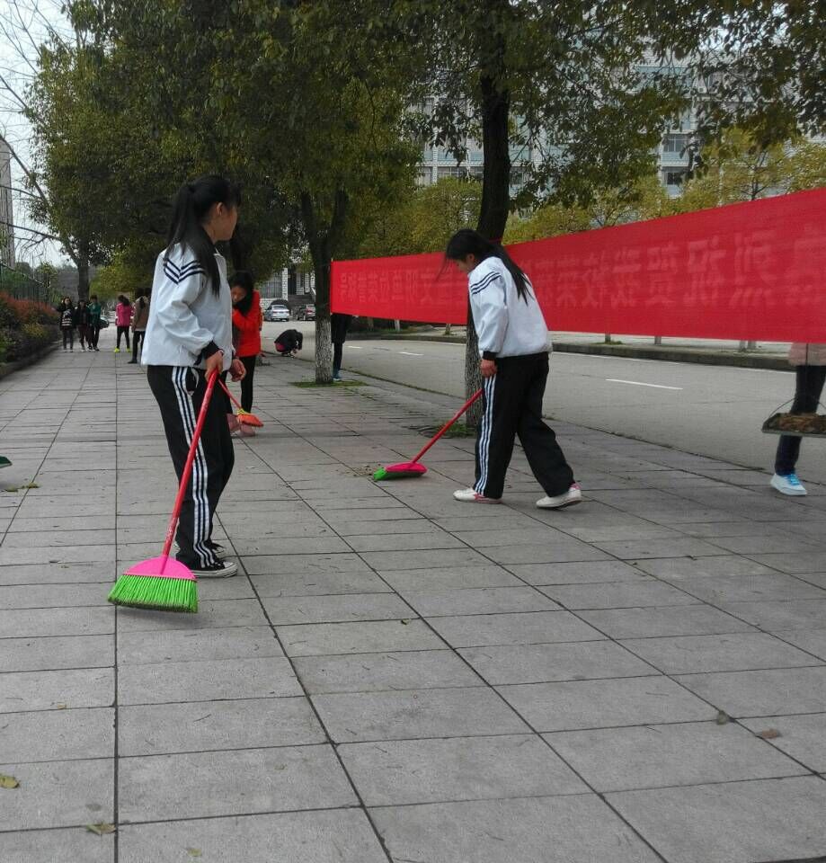 2015年3月16日14英本1班全体成员自带工具,辛勤打扫,无私奉献,充分展现出保护环境舍己为大家的优良品质。