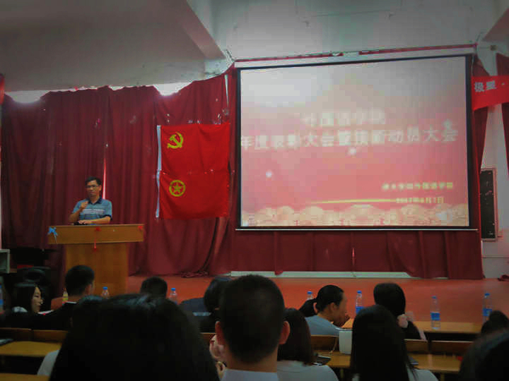 为全面梳理2017年外国语学院各部门的工作,对本学年的优秀工作者,优秀团体进行表彰,同时对下学期的接新工作进行动员,切实加强外国语学院基层组织和干部队伍建设,努力推动外国语学院工作再上新台阶,外国语学院于2017年6月7日中午12点40在1115举办了此次表彰大会暨接新动员大会。此次会议由团总支副书记刘珊主持,此次会议的嘉宾有外国语学院党总支书记黄柏萍、副书记刘佳萍、学生党支部书记彭侃和15、16级辅导员。