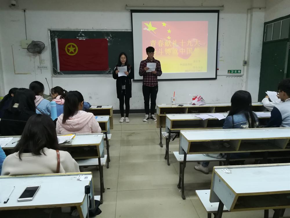 为了激发同学们的爱国情怀,外国语学院于晚上七点在英华楼3303举办“青春献礼十九大,奋斗铸就中国梦”的演讲比赛初赛。担任本次比赛的评委有主席团助理文婷喻、组织部部长叶敏、宣传部部长沈依林、新媒体中心主任杨晨怡。