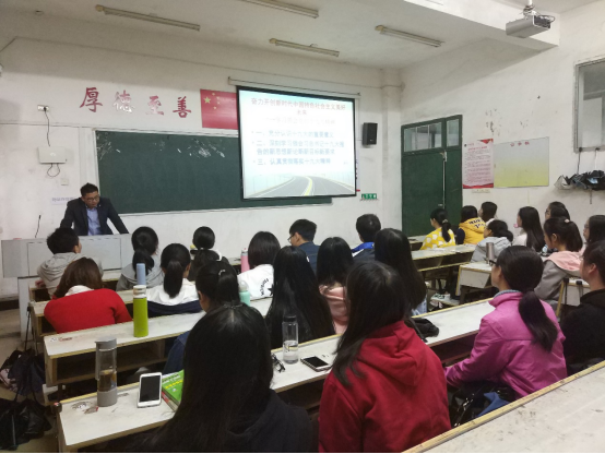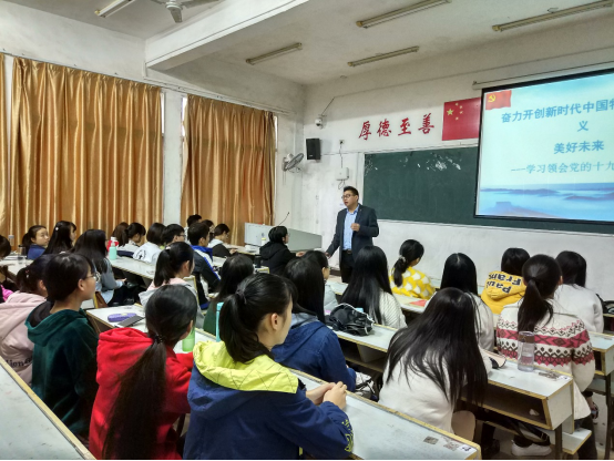 台下听众聚精会神,台上主讲激昂澎湃。今天,一堂庄重别致的十九大精神宣讲会在英华楼召开。我们很荣幸的请到了主讲人校团委谢伟萍副书记;同时,参加本次宣讲会的还有外国语学院16级辅导员廖宇沙老师。