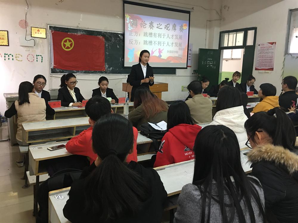 此次辩论赛可谓是一场听觉与视觉的盛宴。正反两方都盛装出席,满怀信心与激情。在双方各自进行了简单的赛前介绍后,激烈的比赛也就拉开了帷幕。此次辩论赛的辩题是跳槽是否有利于人才发展。正方观点是“跳槽有利于人才发展”,反方观点是“跳槽不利于人才发展”。正反两方以当前的人才市场及就业环境等作为切入口,以当前的就业形势为背景,各自进行了深入的分析,也从各个角度和使用各种例子来阐明她们一方观点的正确性。无论是正方还是反方,论点都有理有据。也将底下的观众带入到一轮又一轮的思想高潮。同时,精彩的辩论也赢得了一阵又一阵的热烈掌声。