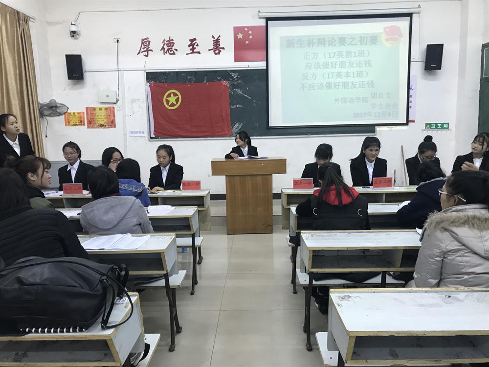 2017年12月14日,激烈而又紧张的辩论赛在万众瞩目中拉开序幕。出席本次辩论赛的有外国语学院团总支副书记文婷喻、团总支学生分会副主席罗萍、最佳辩手徐佳佳齐。