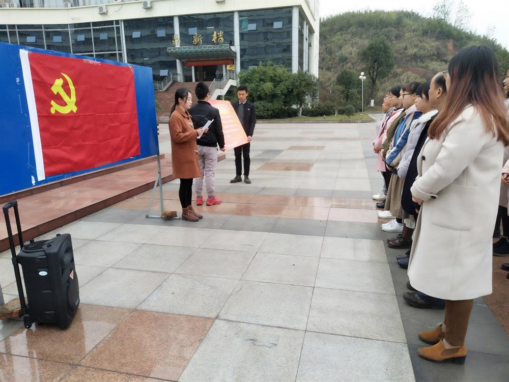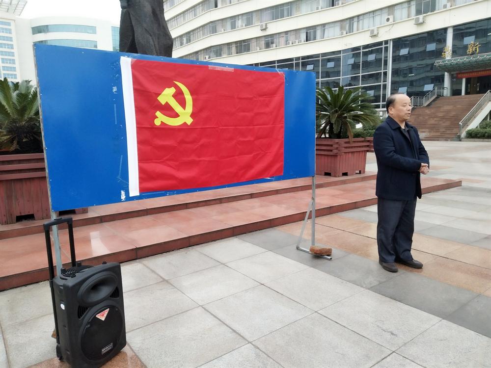 2017年12月12日下午16时,外国语学院党总支于毛泽东像前为赵烨飞、邵琪焱等11名预备党员举行入党宣誓仪式。参加此次入党宣誓的有外国语学院党总支书记黄柏萍、学生党支部书记彭侃,16、17级辅导员廖宇沙、冷全宝,11名预备党员以及学生党支部各支委。此次仪式由外国语学院学生党支部专科支部副书记李雅婷主持。