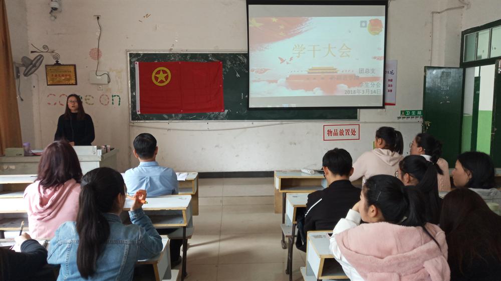 会议首先由外国语学院团总支学生分会主席张奇对学干们提出新学期工作要继续保持积极,以及各方面工作都要积极配合。接着外国语学院团总支副书记文婷喻上台发言,三月是雷锋月,相应会有一系列的学雷锋活动,文婷喻表示各班班长和团支书要积极动员班级同学,组织好各项活动,学习雷锋精神,展现朝气蓬勃的精神。接下来卫检部部长孙梓馨上台强调教室和寝室卫生问题,希望各班能及时打扫好卫生。会议最后,由外国语学院党总支副书记刘佳萍讲话,他对新学期的工作做出了新的计划,并且他提到“借口只是逃避责任的行为”,就是希望各位学干能各司其职,及时做好每一件事,不拖沓不推脱。