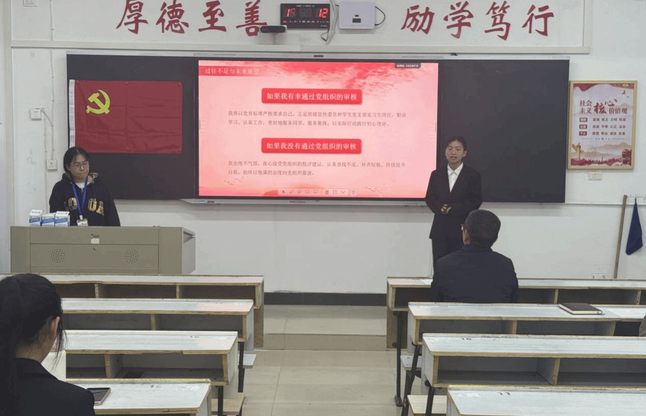 为把好党员发展质量关,夯实党建工作根基,2026年3月31日16时,外国语学院学生商务英语党支部于英华楼召开入党申请人述职大会暨民主评议会。