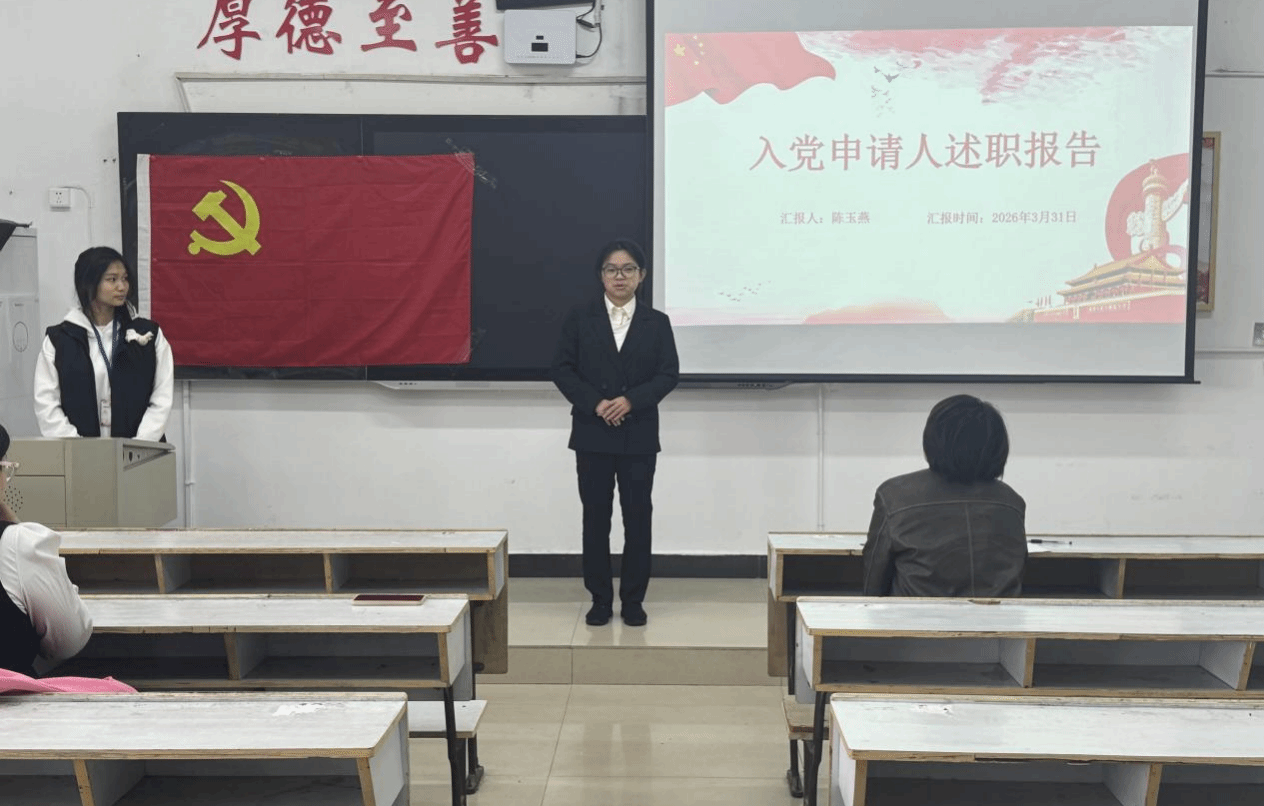 为把好党员发展质量关,夯实党建工作根基,2026年3月31日16时,外国语学院学生英语党支部于英华楼召开入党申请人述职大会暨民主评议会。