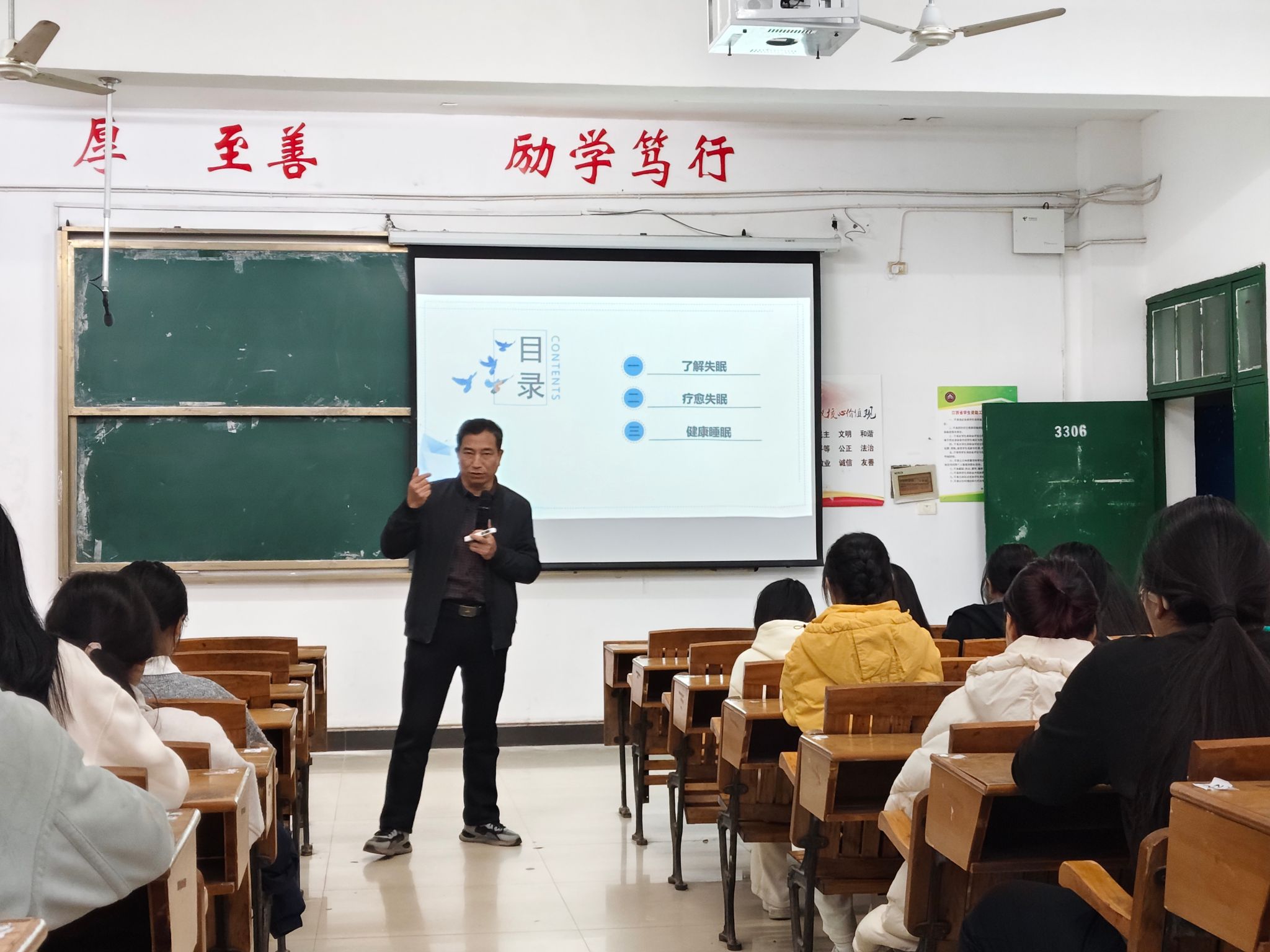 为提高同学们对身心健康的重视,普及健康睡眠知识,帮助同学们改善睡眠质量,在世界睡眠日到来之际,萍乡学院外国语学院学生会、宿管会于2025年3月19日晚上19:00在英华楼3306教室为大一学生举办了一场别开生面的睡眠宣讲活动。此次活动由王卫民老师主讲,主题为“健康睡眠,优先之选”。