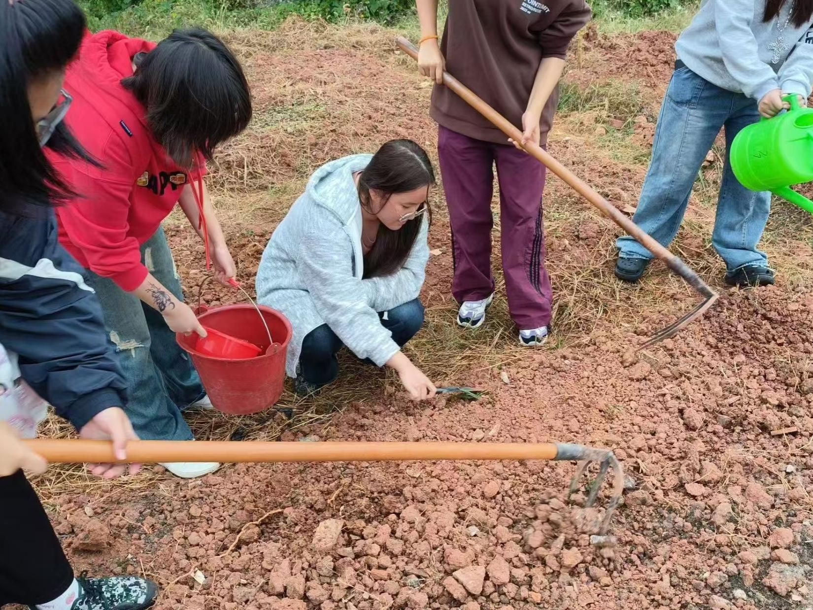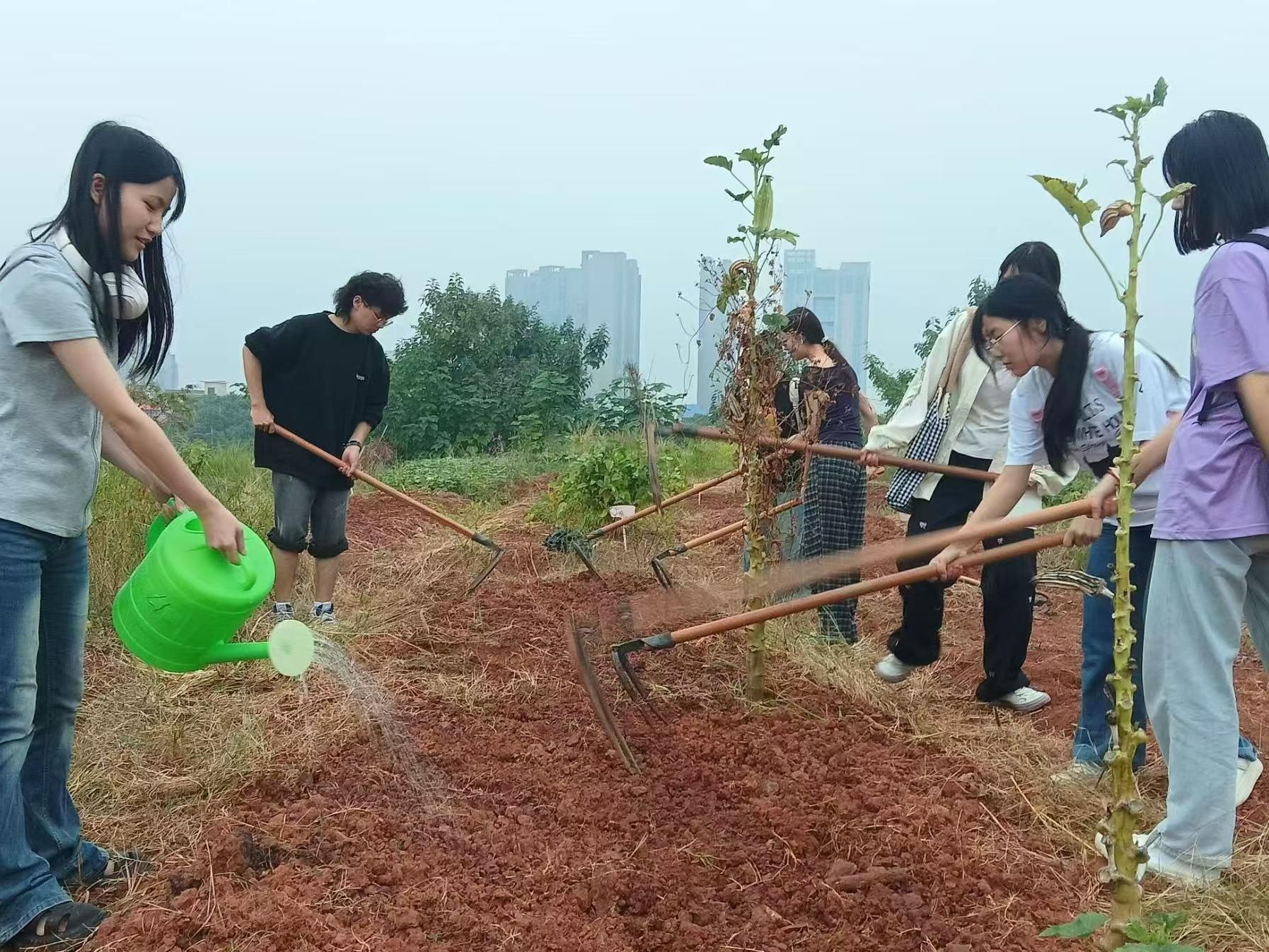 劳动耕耘活动,如夜晚中的一束烟火光芒,照亮了晚城的风景,学生就如一座城,被这束光芒滋养,从而绽放出自己的青春绚丽繁华。10月,外国语学院23、24级各班同学,由各班班委有序安排同学参与活动。当学生到达躬耕之家,各班级班委给同学分工明确,劳动工具的分配也井井有条,锄头、铲子、种子、洒水器等一应俱全,每位同学都手握自己的工具。再由外国语学院院部划分好,各班劳务占地,各班委分配好各位同学工作。由此,一场意义重大的耕耘劳动就此展开。校园的躬耕园里,各班班委带领着学生们一起种植花卉和蔬菜。他们拿起锄头,翻松土壤,播下种子,然后浇水、施肥,精心呵护着每一颗幼苗。同学们围在耕地边,认真地学习着种植技巧,感受着劳动的乐趣。在阳光的照耀下,幼苗们茁壮成长,它们将为校园带来一片绿意和生机。在秋日耕耘,滋养我们的家园、校园、家园。
