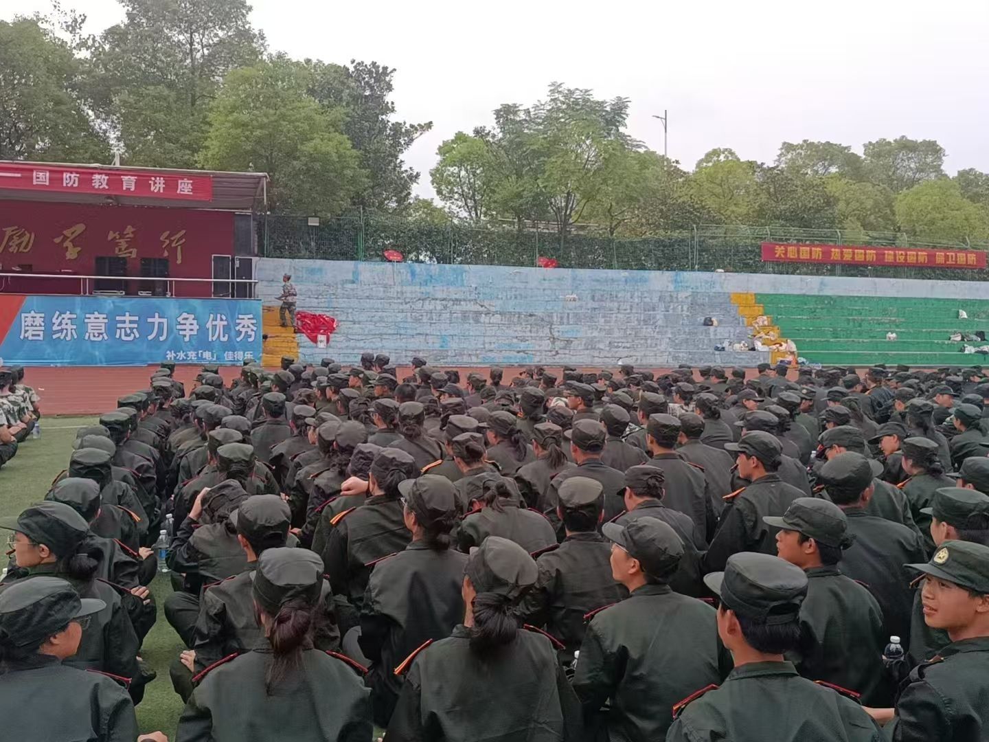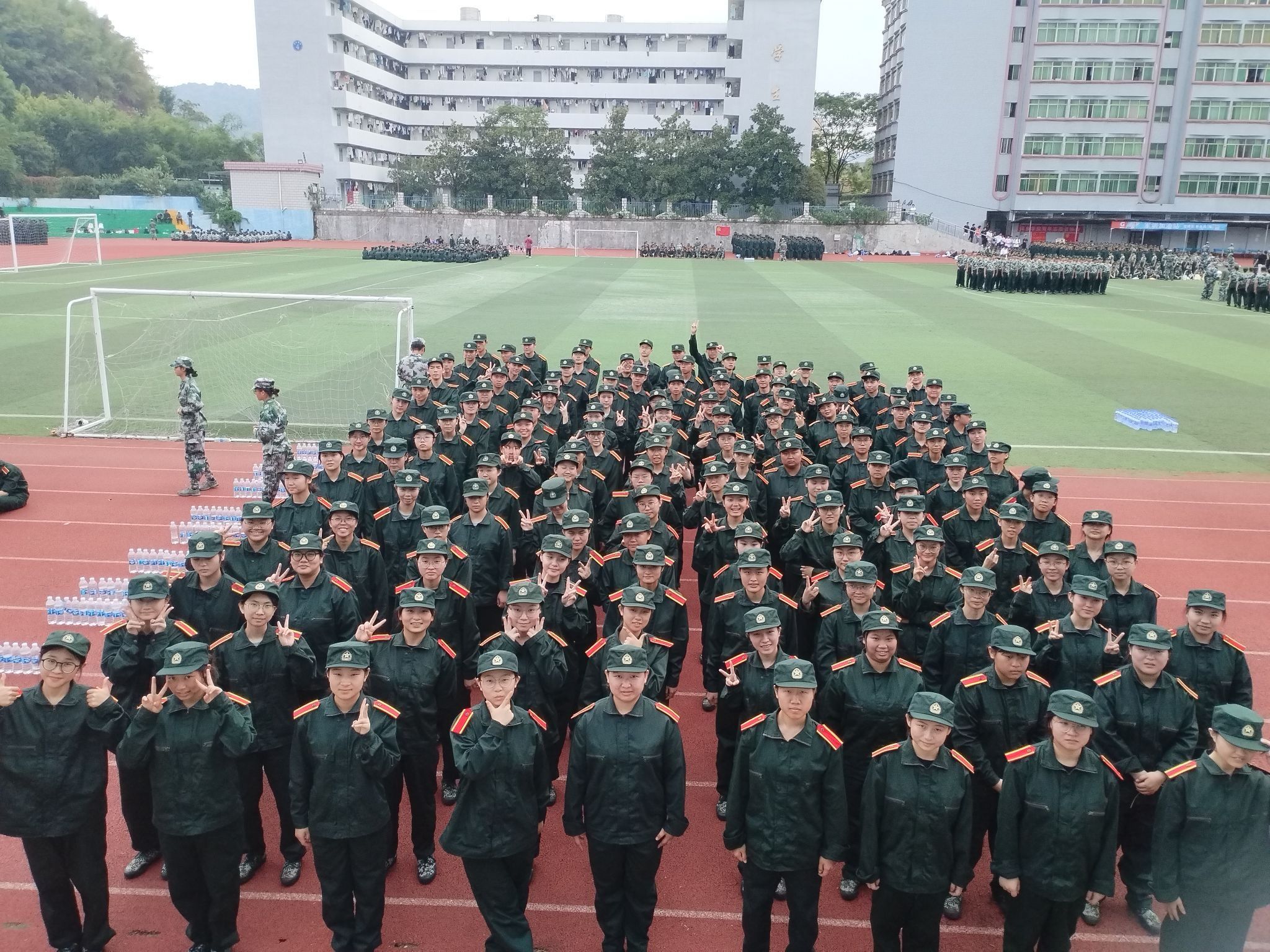 军训场上,新生们身着统一的迷彩服,队列整齐,步伐矫健。尽管天气炎热,但他们毫不退缩,以顽强的毅力坚持着每一个训练动作。汗水浸湿了衣背,却浇不灭他们心中的热情与信念。他们知道,这次军训不仅是对身体素质的锻炼,更是对意志品质的磨砺。学院书记和辅导员们对新生们的军训情况给予了高度关注。他们来到军训现场,对新生们进行了亲切的慰问,详细询问了新生们的身体状况和训练感受,鼓励他们要继续保持昂扬的斗志,坚持到底,不负青春韶华。同时,他们还对新生们的训练成果给予了充分肯定,希望他们在接下来的军训中能够再接再厉,取得更加优异的成绩。学长学姐们为了表达关怀与支持,买来了新鲜的水果和香甜的奶茶,为新生们送去了丝丝凉意和暖暖关怀。新生们在休息间隙不仅品尝到了炎热天气的甘甜,也感受到了来自学长学姐们的深情厚谊。此外,为了丰富军训生活,学校为新生们组织了歌咏比赛、拔河比赛以及叠军被比赛等项目,外院学子在这些比赛中也赛出了自己的水平。这些活动不仅让新生们在紧张的军训中得到了放松和娱乐,也进一步增强了他们的团队意识和集体荣誉感。同时,书记、辅导员和学长学姐们在观摩比赛时紧跟比赛节奏,心跳与赛场同频共振。