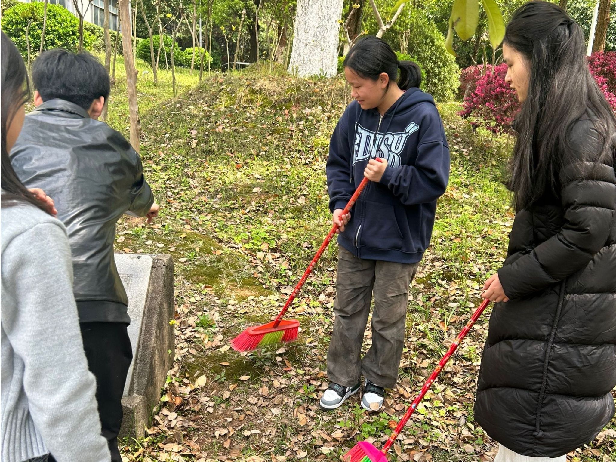 在五四精神的感召下,为传承红色基因,增强同学们的环保意识,营造整洁庄严的校园环境,外国语学院于2025年4月2日13:00开展了“五四青年林”清扫活动。学生会参与成员有杨亚男、杨乐楠、张星宇、黄莉、邓宇涵、黄易凡。