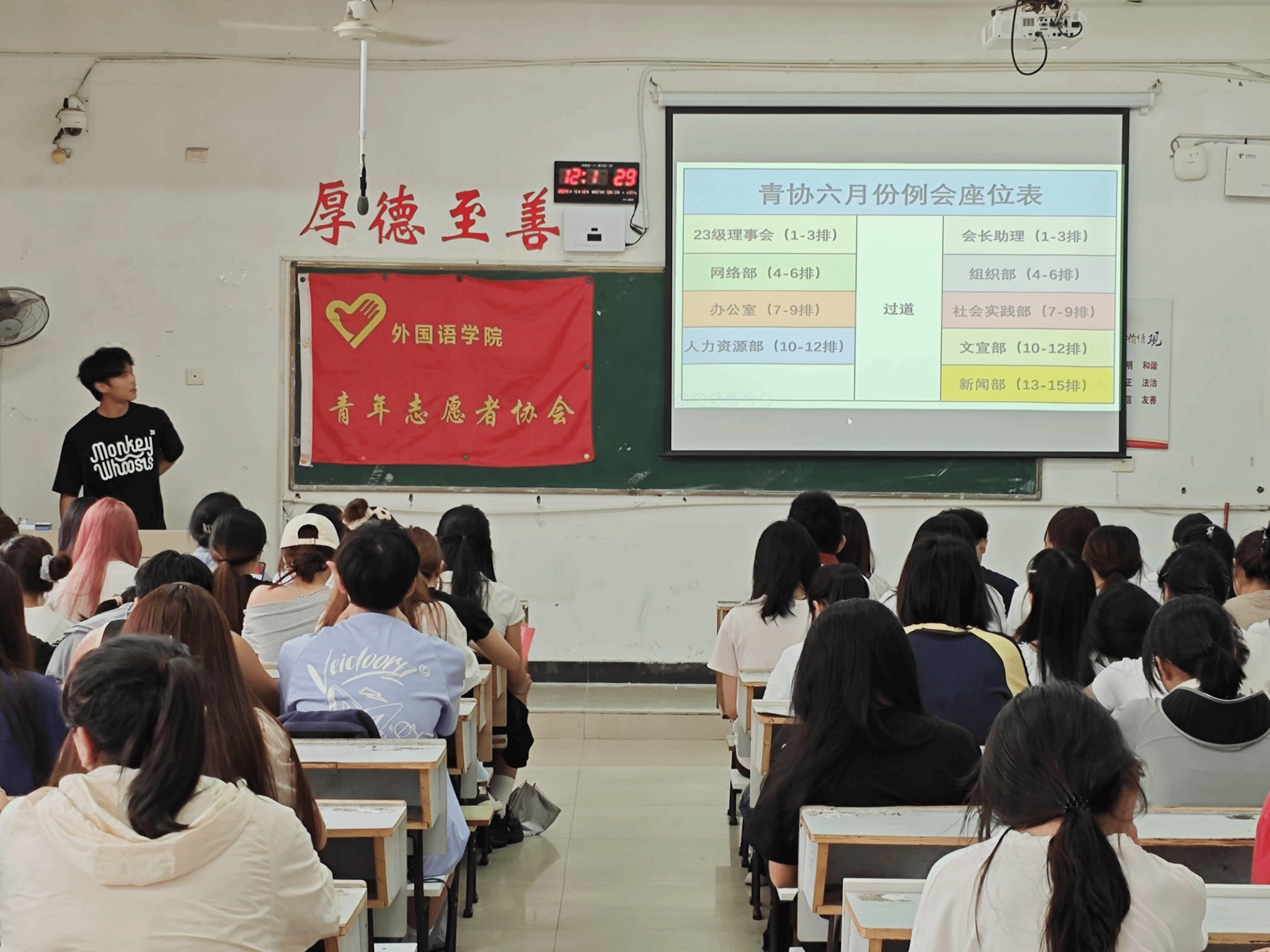 2025年6月10日,星期二,中午12:10,外国语学院青年志愿者协会在英华楼3307召开例会。参加本次会议的嘉宾有外国语学院23级理事会成员以及外国语学院24级青协成员。