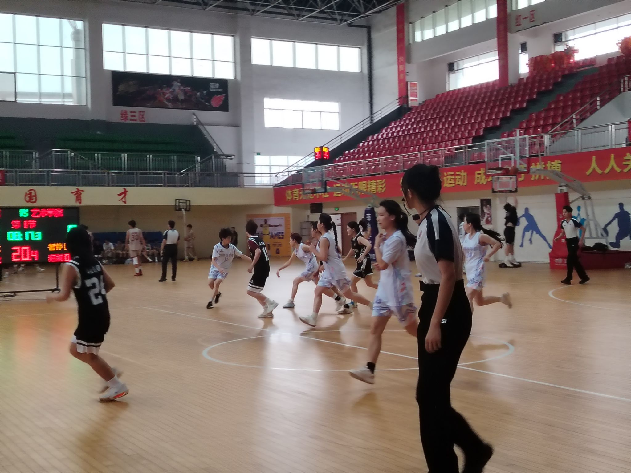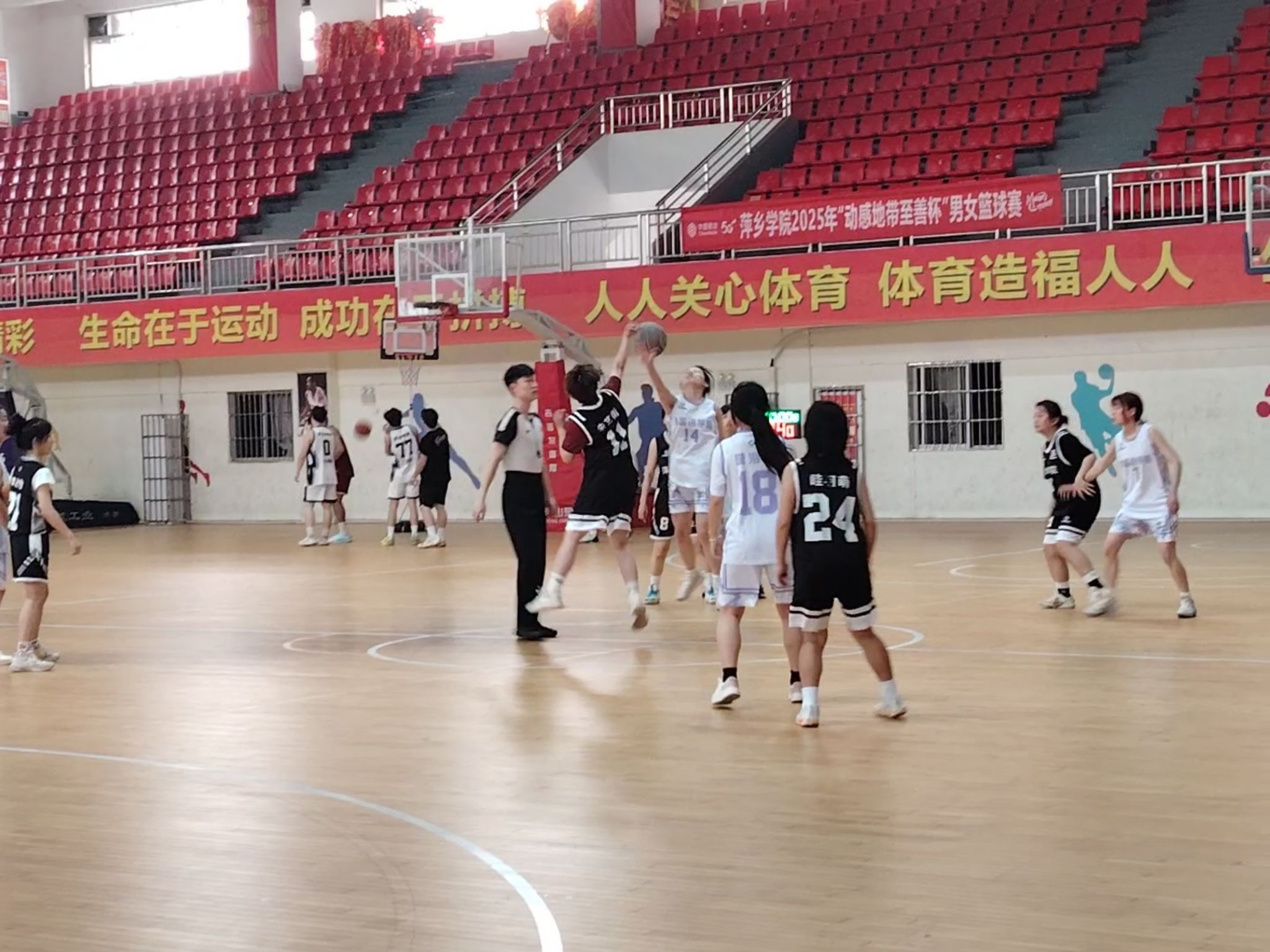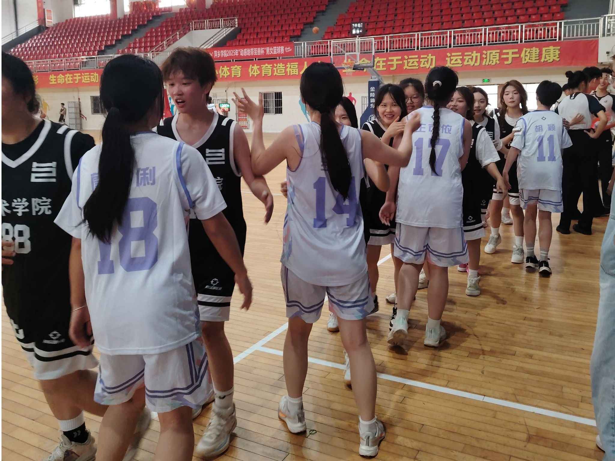 为了增强同学们的身体素质,增进同学之间的友谊,萍乡学院精心策划女子组“至善杯”篮球比赛,此次比赛在体育馆隆重举行。参赛双方分别是外国语学院篮球队与艺术学院篮球队的选手们,她们身着鲜明队服,眼神中满是对比赛的期待与斗志。
