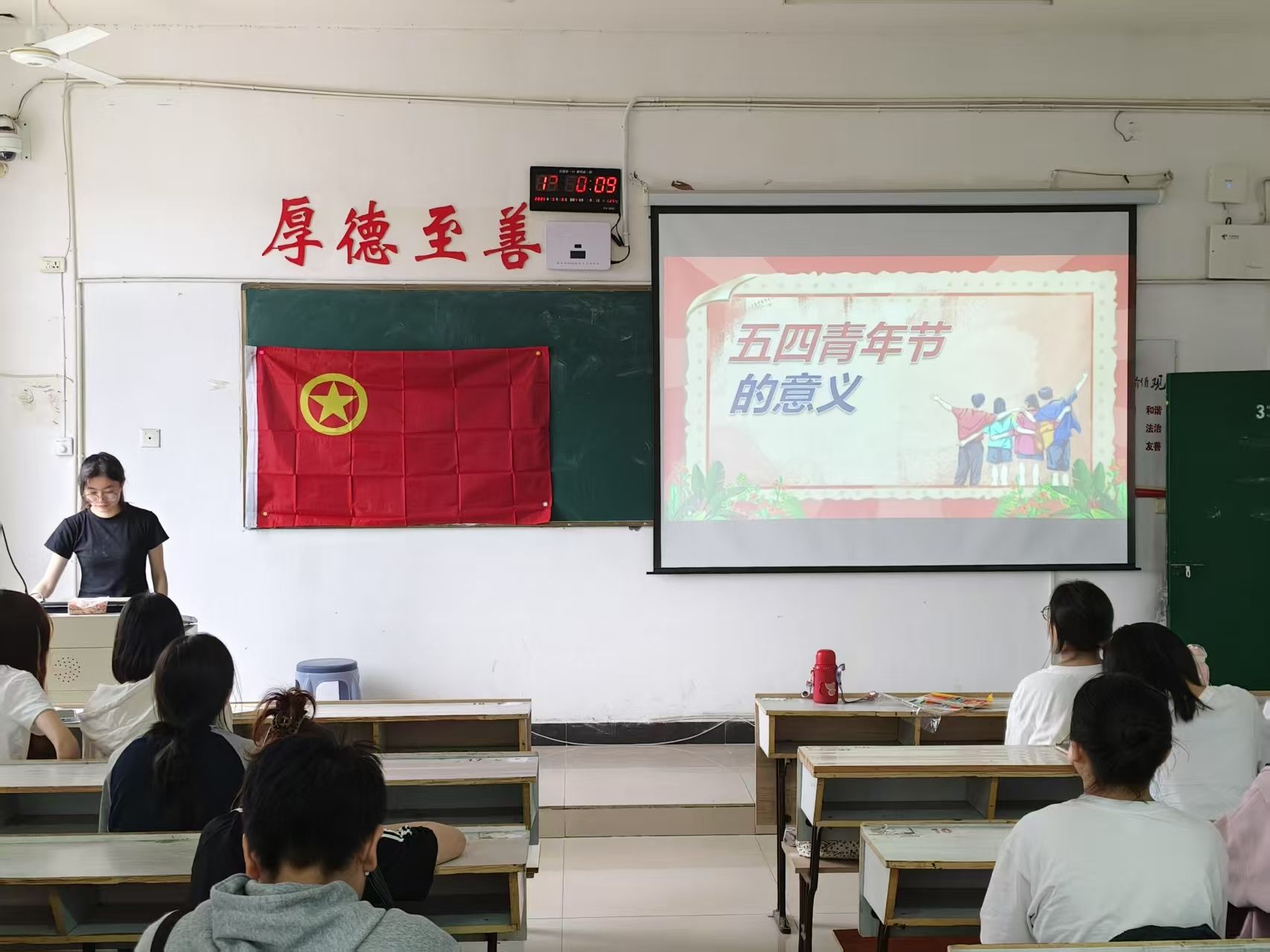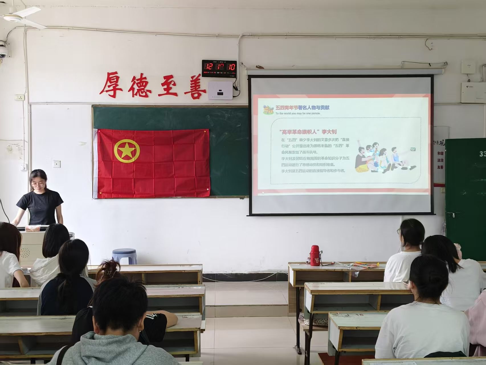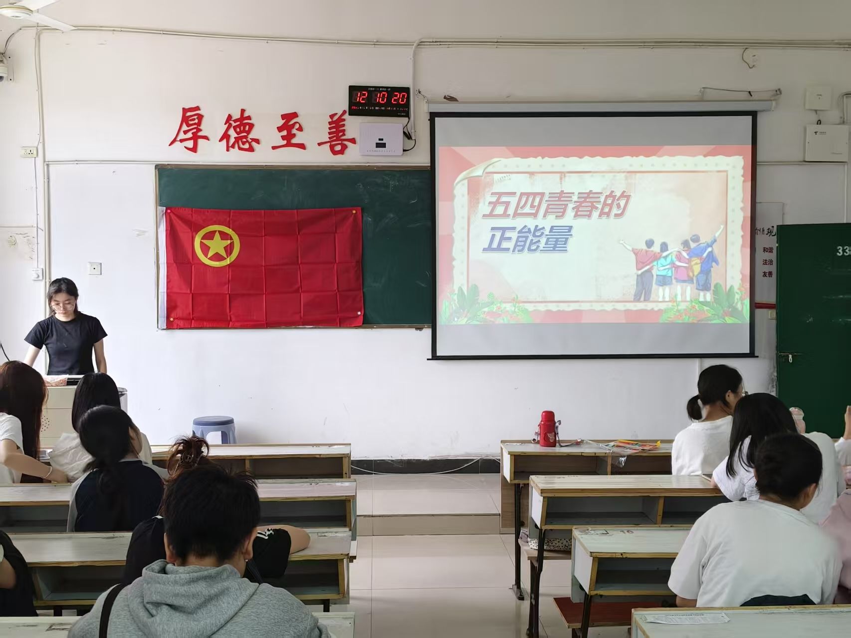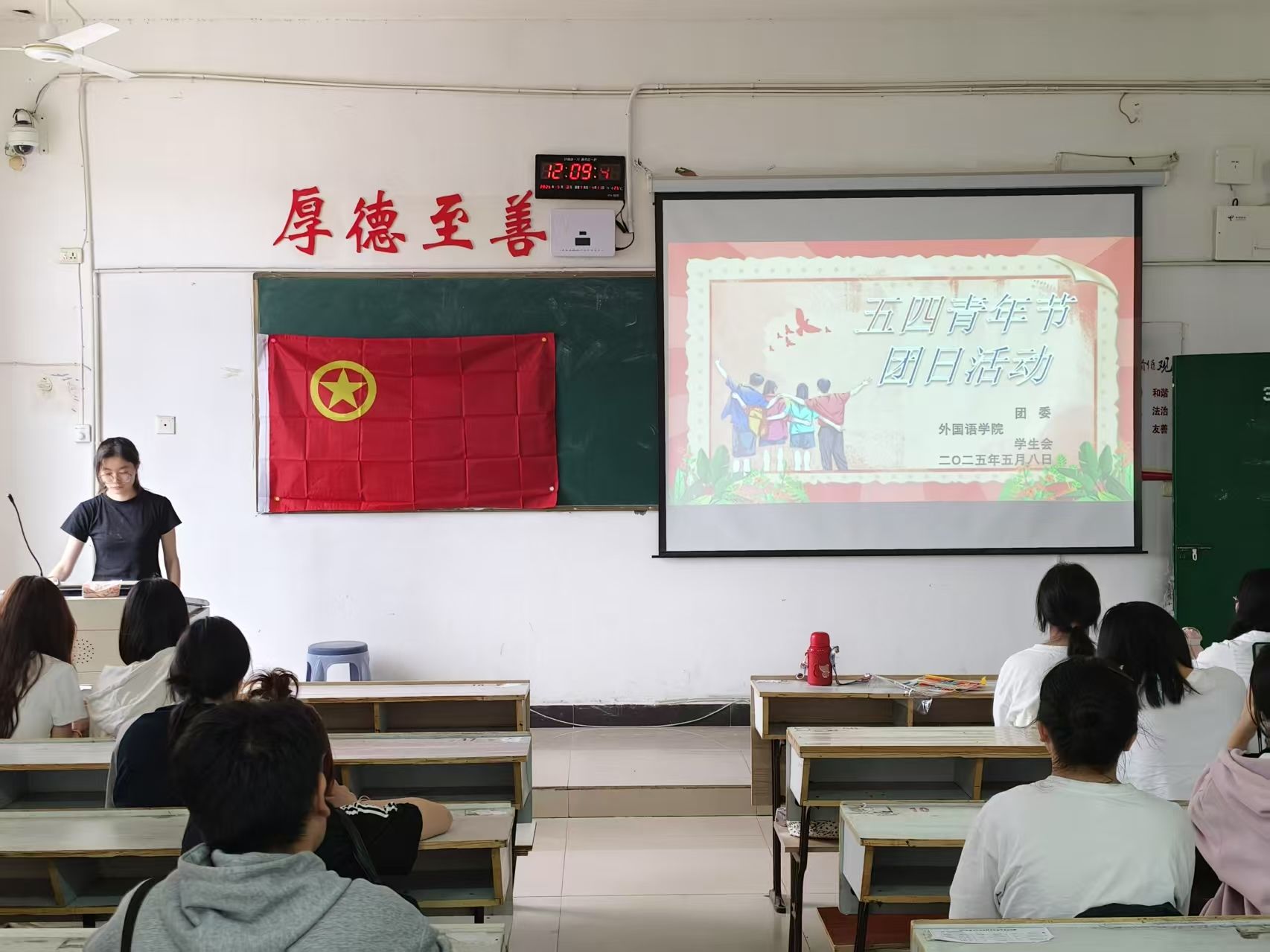 为了纪念五四运动,传承五四精神,彰显青年担当,外国语学院于2025年5月8日上午9:00在英华楼3301教室举办“五四青年节”团日活动。到场的嘉宾有外国语学院团委副书记裘佳美,团委学生会主席黄胜兰,团委学生会副主席邹奕姿,团委书记助理欧阳娜、黄煜婷,办公室主任罗静雯以及全体团委学生会学干。