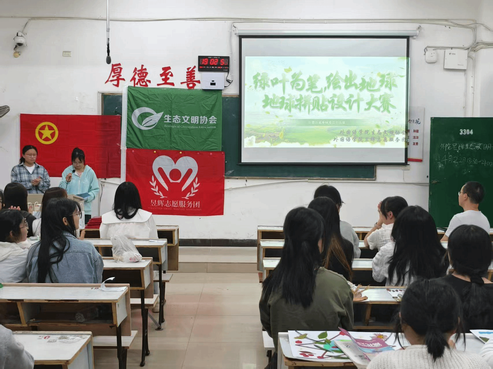 在生态环境问题日益凸显的当下,环境保护成为全球关注焦点。为增强同学们的生态环保意识,鼓励大家以创意式展现对地球家园的热爱与呵护,生态文明协会与昱辉志愿服务团共同发起“绿叶为笔,绘出地球”地球拼贴设计大赛。希望以设计和艺术创作为媒介,激发大学生对于环境保护的意志,同学们在找寻制作海报的材料时,走出门去体验生态之美,体验自然的艺术,将自己的感受融入创作设计中,为维护生态环境贡献自己的力量。本次活动旨在以生态文明协会及昱辉志愿服务团为依托平台,面向外国语学院全体学员。