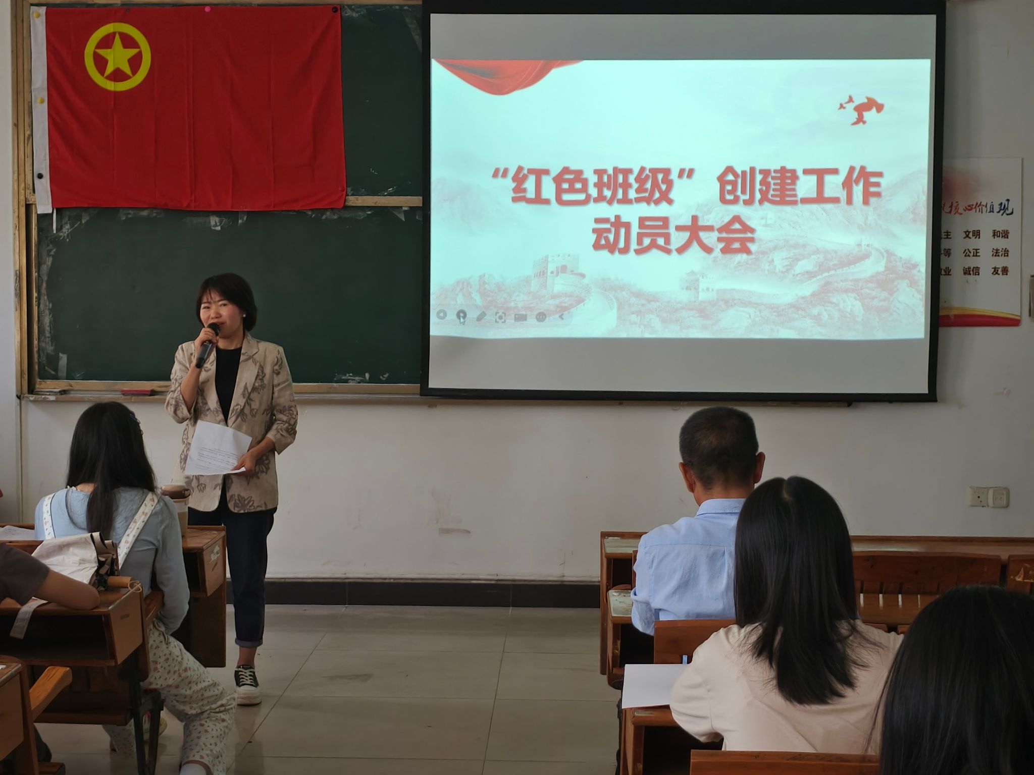 本次动员大会聚焦红色教育,旨在引领学生塑造正确价值观与人生观,厚植爱国主义情怀,增强社会责任感。会上,曹金萍书记围绕红色班级建设的战略意义展开深入论述,这不仅是传承红色基因的重要载体,更是弘扬新时代革命精神的关键阵地,对于培养具有家国情怀的社会主义建设者和接班人具有深远意义。她还特别分享了自己班级举办红色班级创建活动的精彩历程。此外,曹书记对已提交红色班级建设策划书的班级给予充分肯定,并号召其他班级以榜样为引领,将红色教育融入班级日常管理与活动实践,共同打造富有凝聚力与感染力的红色文化育人阵地。