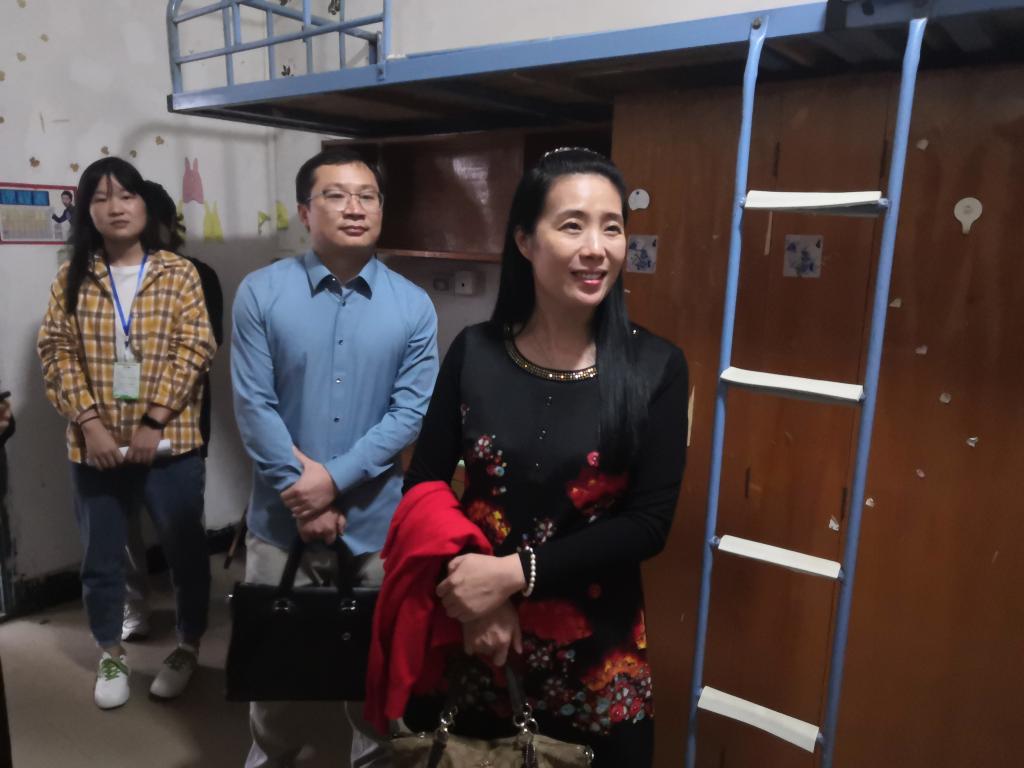 各位领导一到达宿舍便受到各位新生的热烈欢迎。寝室里,黄书记首先检查了各个宿舍的安全及卫生情况,对部分宿舍电灯损坏及床位存在的安全隐患进行了提醒,并告知各位新生向工作人员及时进行报修。而后,欧阳院长和刘书记也对各位新生的入学情况进行了询问,从日常饮食,到气候习惯,再到寝室条件,各位领导事无巨细地关心着新同学们,并不断的叮嘱他们该如何照顾好自己。此外,在下寝过程中,学院的领导及班主任也各位新生提出了几点建议,谈到要以最快的速度适应大学环境;同时在大学校园里要学会如何处理人际关系,遇到困难及时与辅导员和同学们交流;要时刻注意自己的人身安全以及财产安全等,为各位新生未来目标的规划和制定指名了方向。