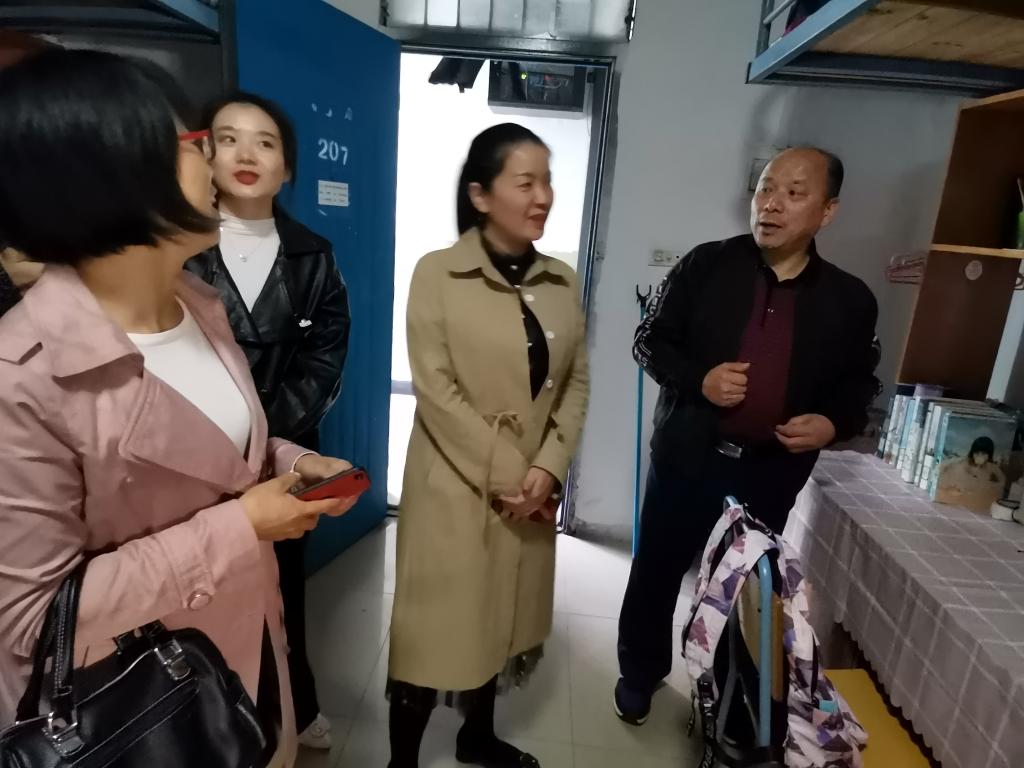 此次走访中,各位领导老师依次前往各个宿舍,与同学们展开了亲切的交谈。每到一间寝室,领导老师都会关切的向新生问到:“你们来自哪里?军训生活还适应吗?在生活中有没有遇到什么困难?”贴心的慰问瞬间消除了新生军训的疲惫感,令各位新生倍感温暖。在交流过程中,领导老师还对各位新生的兴趣爱好和学习情况进行了了解,发现了许多擅长绘画、舞蹈、乐器等文艺活动的同学,也看到有很多新生已经在为四级考试做准备,对此,各位领导老师进行了表扬,并鼓励大家不断充实自己的大学生活,展现自身的才华,为外国语学院添砖加瓦。慰问接近尾声,各位新生纷纷与领导老师告别,表示会谨记老师的教诲,珍惜大学的美好时光,锻炼好身体,磨练好意志,为将来建功立业打下良好的基础。