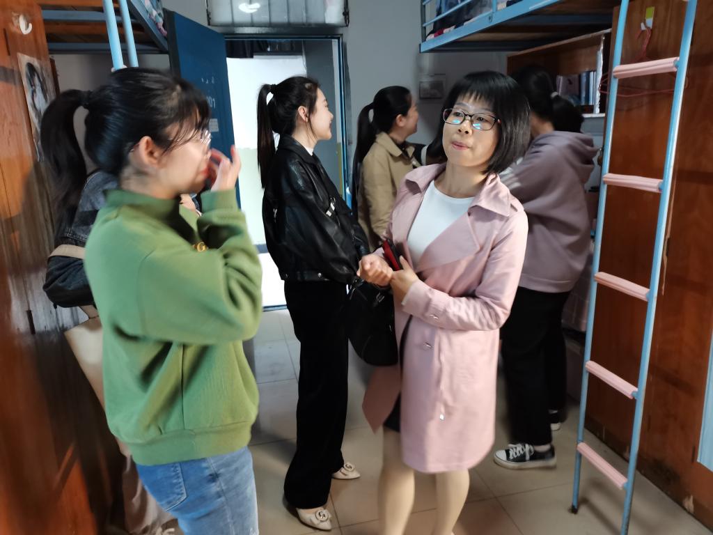 为了解新生对学校环境和军训生活的适应情况,促进师生间的沟通和交流,外国语学院领导于2020年11月3日15:30在10栋宿舍下寝慰问新生。参与此次下寝活动的有外国语学院党总支书记黄柏萍、院长欧阳咏梅、党总支副书记刘佳萍、副院长卓玲、辅导员江双莲、何宇、钟倩。