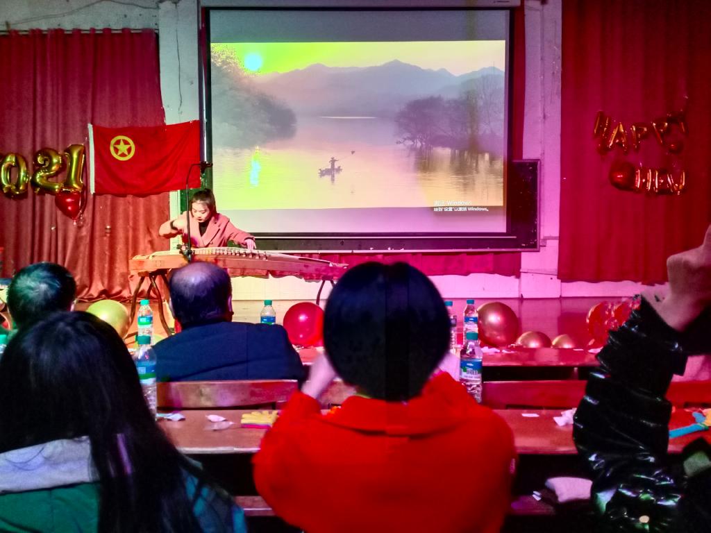 钟倩老师的古筝《渔舟唱晚》将我们带进夕阳西下、湖光山色的如画风景中;何宇老师弹唱的《小小虫》节奏轻快、旋律优美,赢得观众们热烈的掌声。
