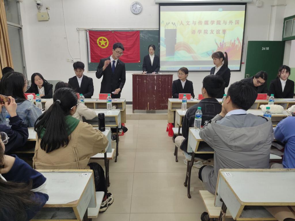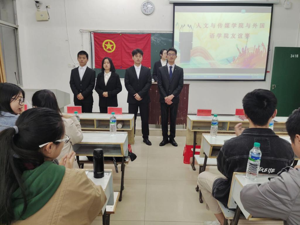 为了丰富同学们的课余生活,开拓学生思维能力,外国语学院和人文与传媒学院于2021年3月25日18:40在英华楼3418教室举办辩论赛之友谊赛。出席此次辩论赛的有校广播台台长廖旭辉,外国语学院团总支副书记舒荟璇,学生分会主席张璐、副主席庄婷,19级辩论队负责人朱江伟,17级优秀辩手范文佳,19级优秀辩手柯梦婷、廖晓真,人文与传媒学院团总支书记黄如光、副书记刘冰,学生分会主席文盛林,18级优秀辩手李彬成、黄超越。