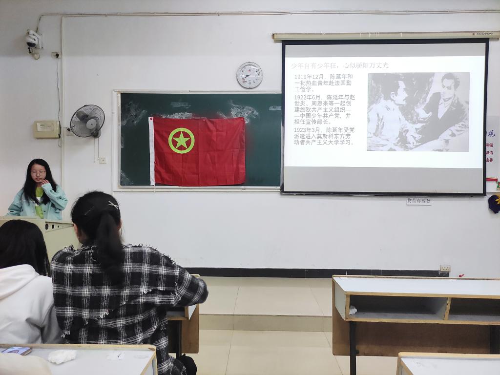 为缅怀革命先辈的丰功伟绩,动员同学们弘扬红色文化,传承红色基因,外国语学院扬帆英语团队于2021年5月18日19:10在英华楼3302教室开展红色经典读书分享会初赛。参加本次比赛的有外国语学院团总支学生分会学习部工作人员及各参赛选手。