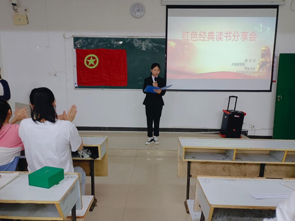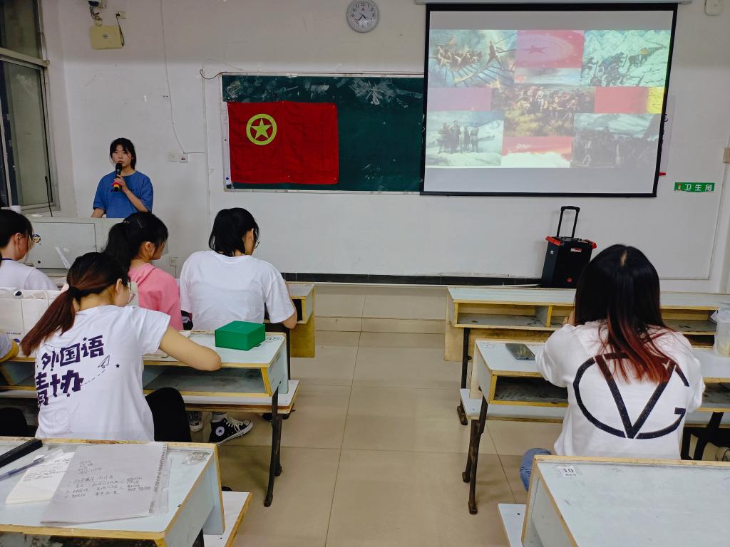 为了深入了解红色经典文化,引导青年大学生学习革命前辈、了解历史,外国语学院扬帆英语团队于2021年5月27日19:10在英华楼3418教室开展红色经典读书分享会决赛。参加此次活动的嘉宾有外国语学院17级辅导员冷全宝、团总支副书记舒荟璇、学生分会主席张璐及部分部门部长。
