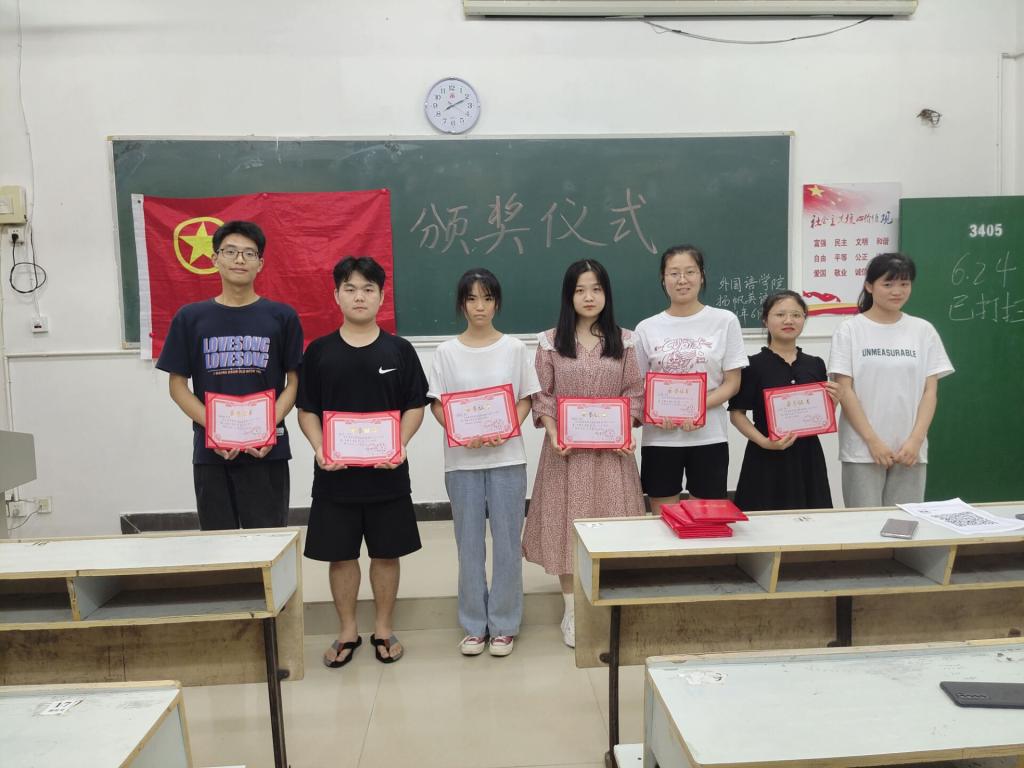 为了营造良好的英语学习氛围,激发学习热情,增加英语学习的趣味性,外国语学院扬帆英语团队于2021年6月24日19:00在英华楼3405教室举办颁奖仪式。参加此次活动的有外国语学院团总支学生分会学习部部长蒋文敏和扬帆英语团队全体成员。