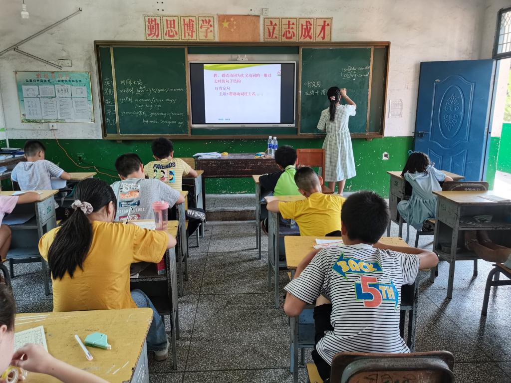 今天已经是支教生活的第四天了,文艺表演依然在紧锣密鼓地筹备着,早晨来到教室之后, 同学们进行了排练。此后,便开始了一天的学习。第一节是语文课,老师以古诗《蜀相》为引,向同学们介绍了一代名相诸葛亮的一生,其间不乏引经据典,也将诗言格律进行了具体而生动的介绍。紧接着,是暑期安全教育课。这堂课与以往的安全教育课不同,老师向同学们介绍了城市的生活,并引导同学们对未来职业及生活进行展望,还运用一代代伟人的理想为例,诸如毛泽东、马克思,教导同学们应提前树立职业理想,认真踏实地学习,为理想奋斗。接下来,轮到本门的王牌课堂——英语课了。考虑到不同年级英语学习程度的差异,老师因材施教,从最为宽泛的时态入手,由简入深、妙用活例,使同学们更加深刻地理解句子的时态和语态。上午的课程由此结束,短暂的午休过后,迎来了下午的课堂。第一节课由手工课的上课铃唤醒,同学们用橡皮泥创造出各式各样的艺术品,有甜品,还有栩栩如生的外星人、活灵活现的小灰熊。最后是充满乐趣的体育课,体育游戏被同学们玩出了花样,松鼠大树、木头人等一系列游戏被各位同学衍生出新鲜的玩法,一天的学习就在同学们的欢声笑语中结束了。