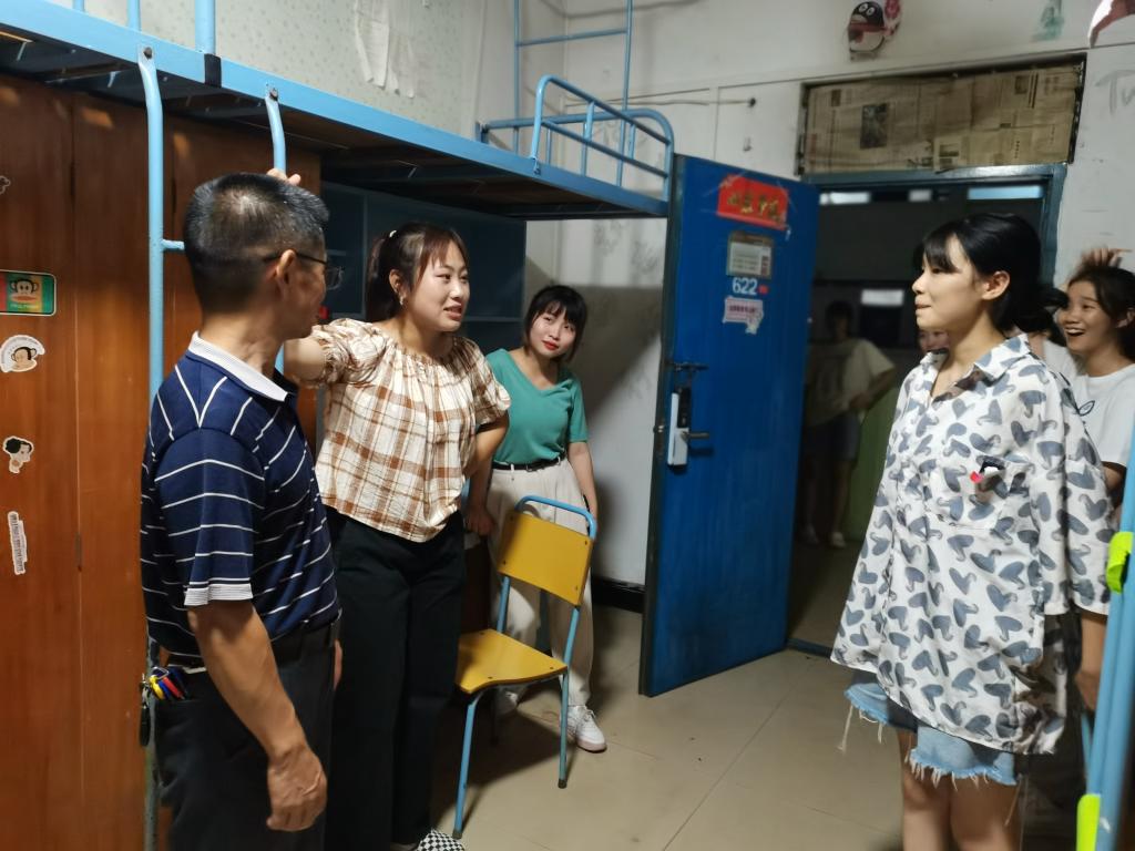 为更好的了解并帮助新生融入校园环境,切实解决新生们的问题,外国语学院领导于2021年9月11日19:00在10栋宿舍下寝慰问新生。参加此次下寝活动的有外国语学院党总支副书记刘佳萍、团总支副书记舒荟璇、书记助理周宇琦、俞柯楠、学生分会副主席庄婷,办公室主任阮欣艳及学生会助理。