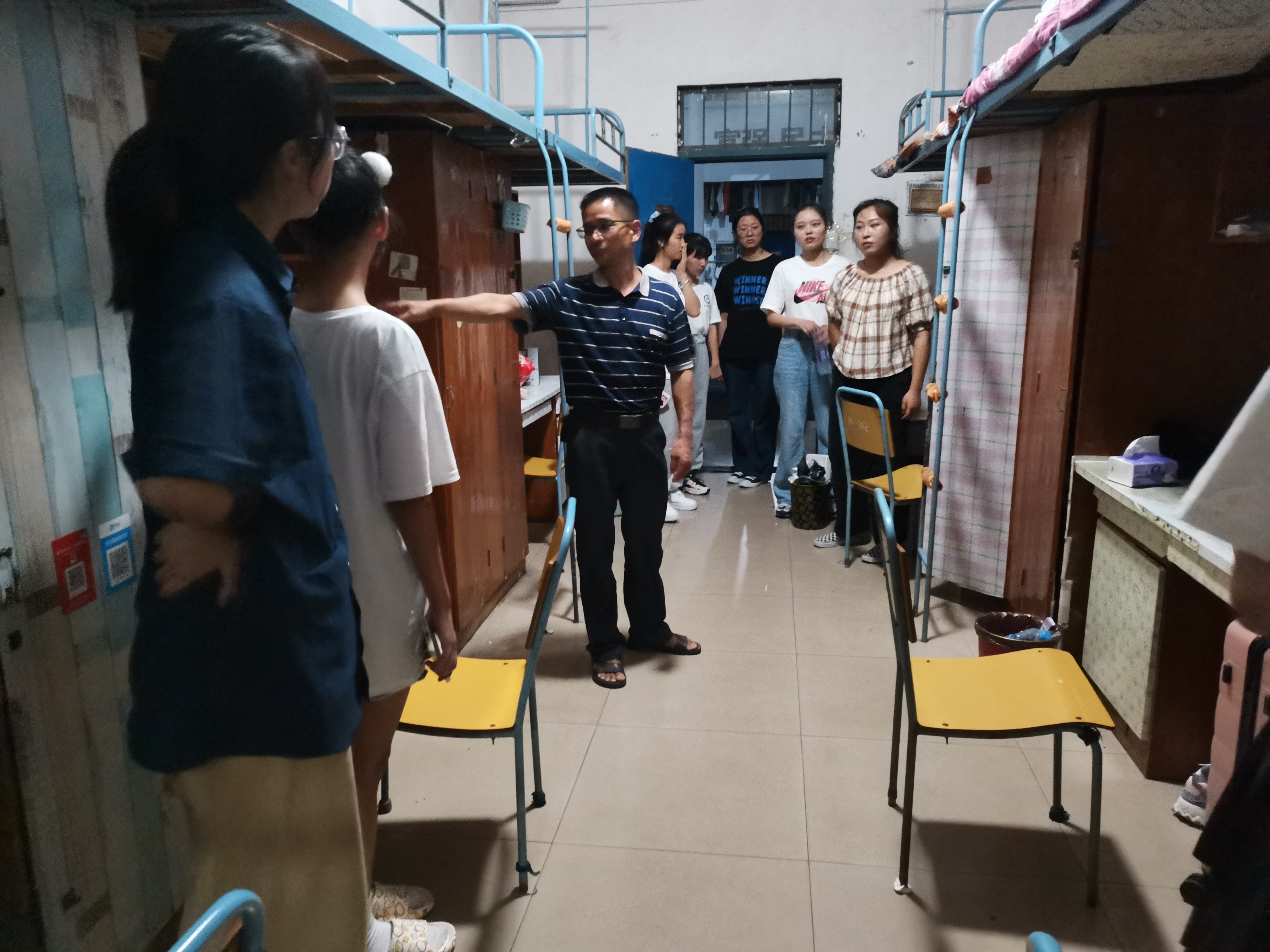 刘书记先是礼貌敲门得到许可后才进入寝室,一进寝室便受到了新生们的热烈欢迎。之后书记和新生们开始亲切友好的谈话,书记耐心的询问大家来自什么地方,并叮嘱新生们注意安全,若寝室内部有什么损坏可以及时报修等。书记还询问了各位同学对学校设施的了解和使用情况,如智能锁开门、洗澡系统的连接、热水的获取,学姐们也为大家答疑解惑。学校是个大环境,书记告诉各位新生,有缘千里来相会,既然来到同一学校同住一间寝室,寝室内部关系要处理好,不许拉帮结派孤立室友,要共同学习相亲相爱。同时,近日诈骗事故偶有发生,书记告诫各位新生一定要谨慎对待关于钱的事情,保护好自己的财产安全。新生们对书记的叮嘱都默记心间,纷纷表示会提高防诈骗意识,在学校与同学和谐相处,共同度过美好的大学生活。
