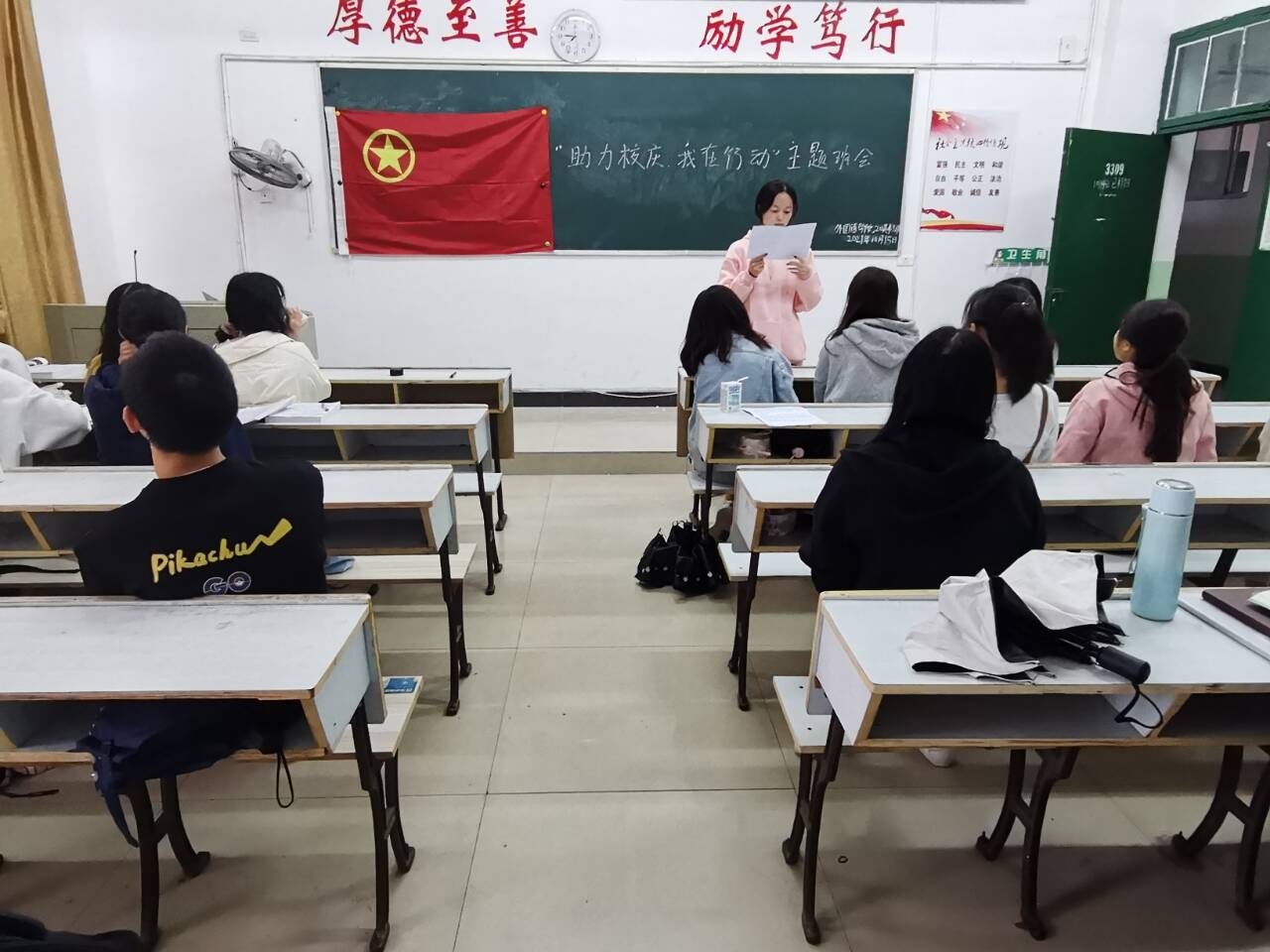 每个人都是自己校园里的一份子,都有义务力所能及地为学校的发展和荣誉献出自己的一份力量。我校即将迎来学校八十周年校庆,为让同学们更好地了解关于学校八十年的发展历史,近一步增强同学们的爱护校园的意识。外国语学院20英本3班于2021年10月15日19:00在英华楼3309召开“助力校庆,我在行动”主题班会。此次班会由班长李双凤主持,全班同学参与。