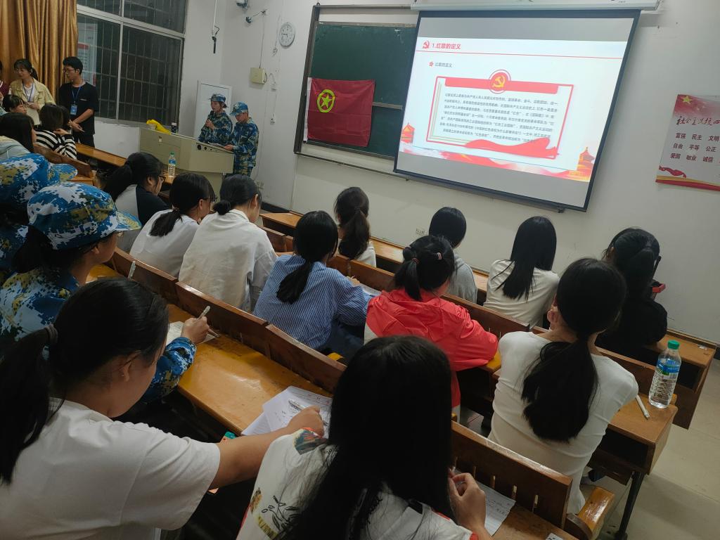 为了纪念建党100周年,弘扬红色革命精神,外国语学院于2021年10月8日19:00在英华楼3206教室召开党史教育主题会议。参与此次会议的人员有外国语学院党总支副书记刘佳萍,21级助理辅导员以及21级全体新生。