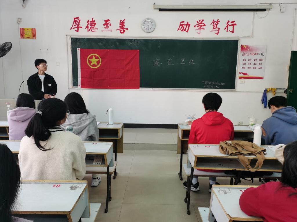 为了使同学们重视寝室卫生,养成良好的卫生行为习惯,外国语学院20商本3班于2021年11月16日20:00在英华楼3116教室举行“寝室卫生”主题班会。此次班会由班长何浩文主持,全班同学参与。