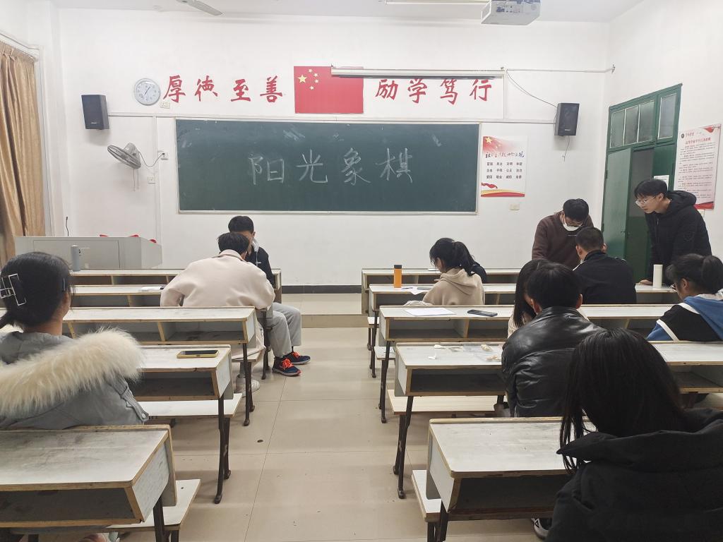 为了丰富学生们的课外生活,培养业余爱好,增强对中国国粹象棋的了解,外国语学院于2021年12月14日19:00在英华楼3305教室举办阳光象棋院级初赛,参加此次活动的人员有外国语学院青年志愿者协会副会长邬巡洋、外国语学院学生会委员会体育部部长付迎及各参赛选手。